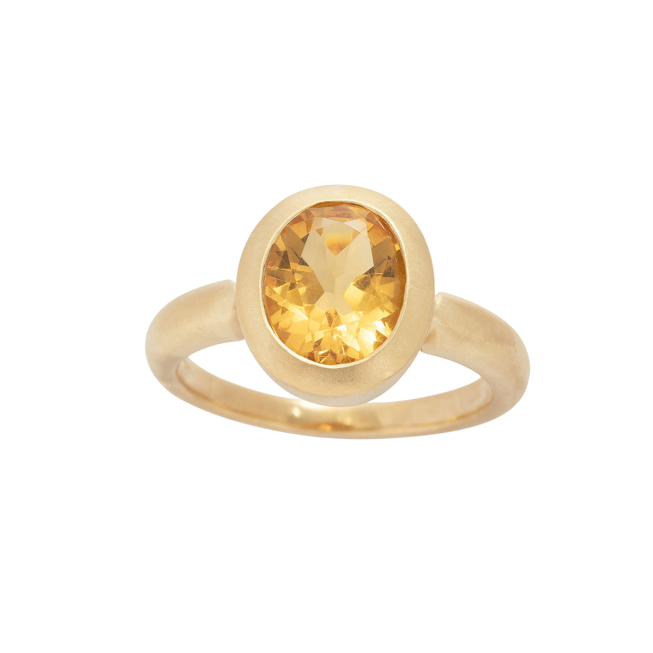 Anel de ouro amarelo com citrino e 7,5g. Medida 18.