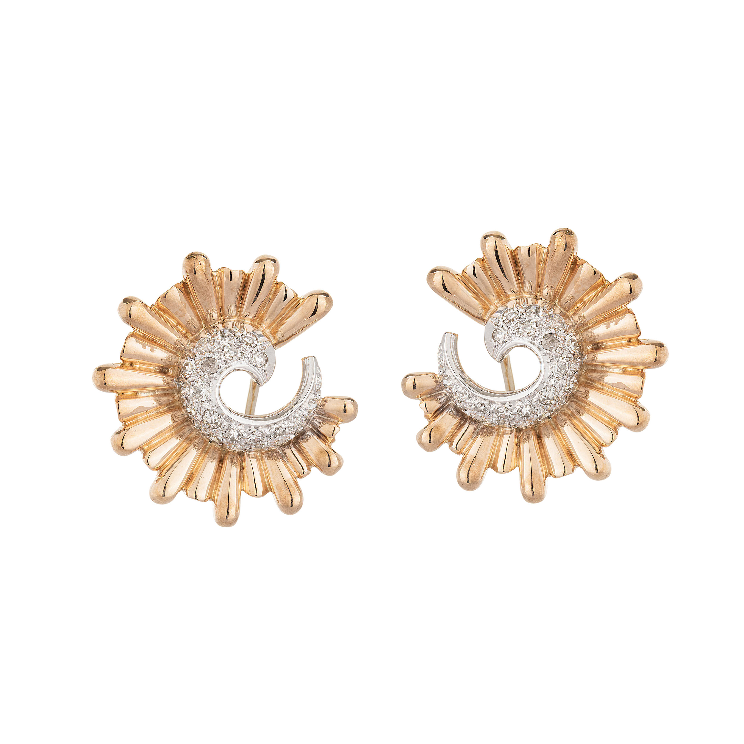 Brinco de ouro rosé e platina com 0,90ct de brilhantes e 23,5g. Medida 3cm.
