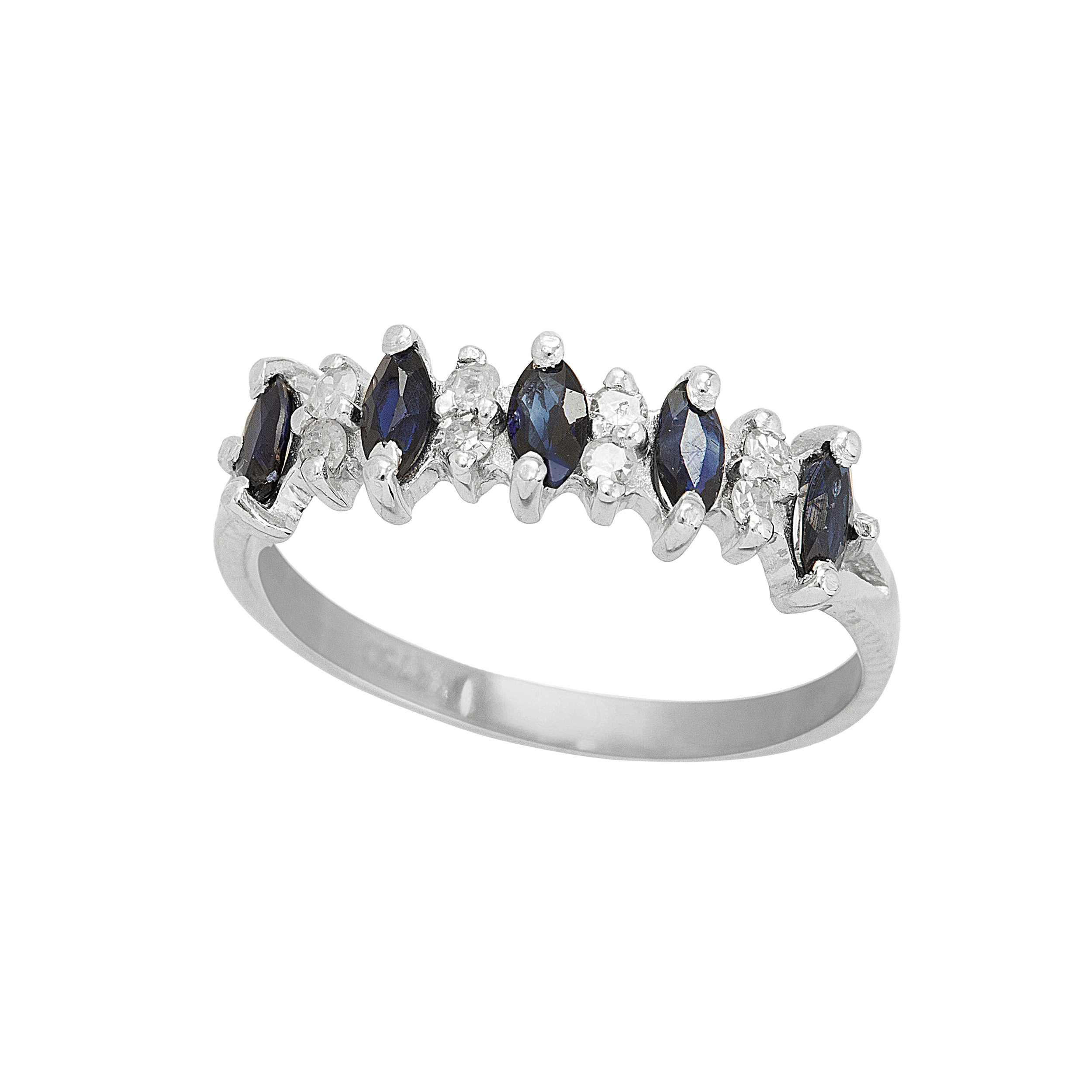 Anel de ouro branco com safiras e 0,08ct de brilhantes. Medida 13.