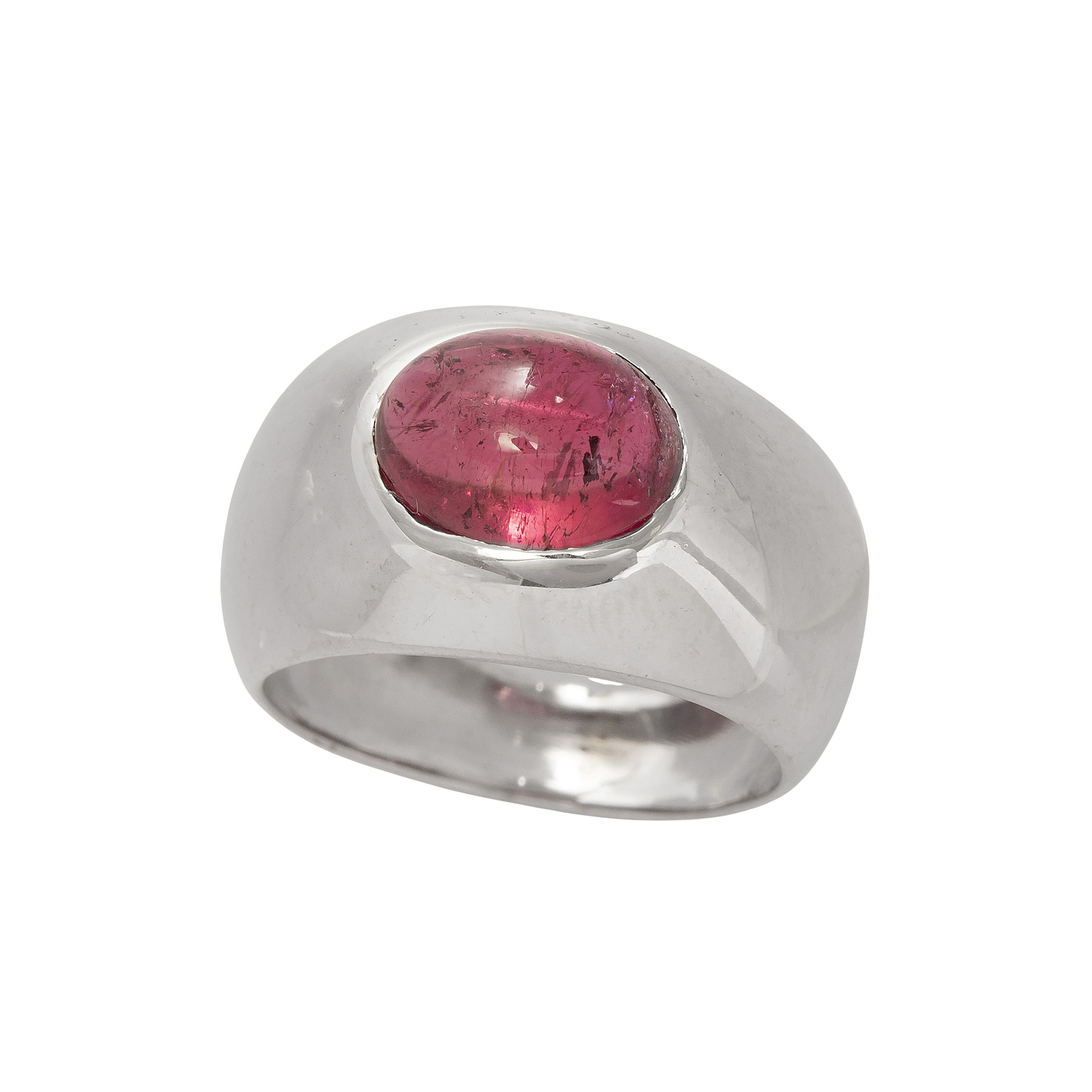 Anel de ouro branco com turmalina rosa. Medida 11.