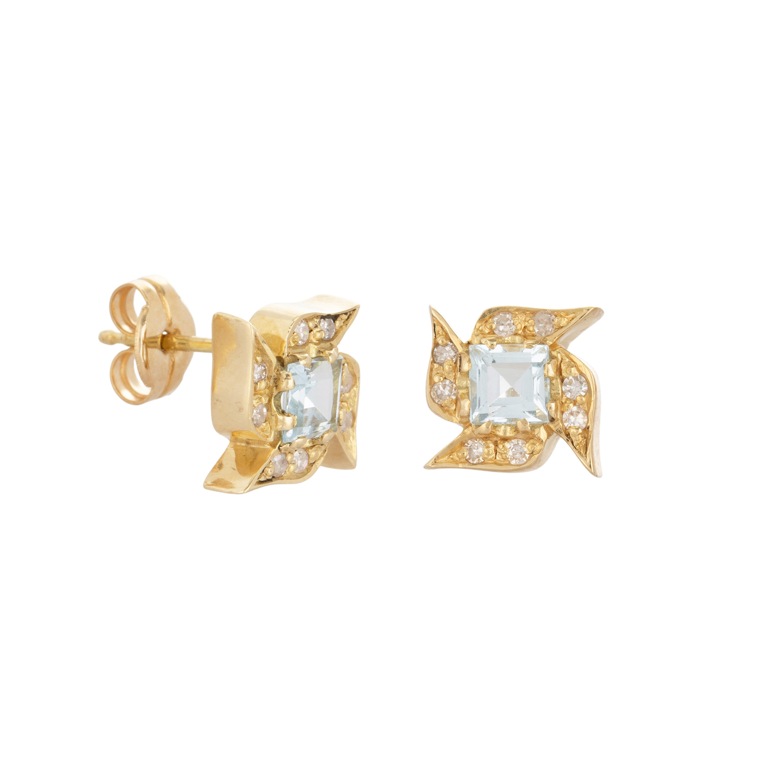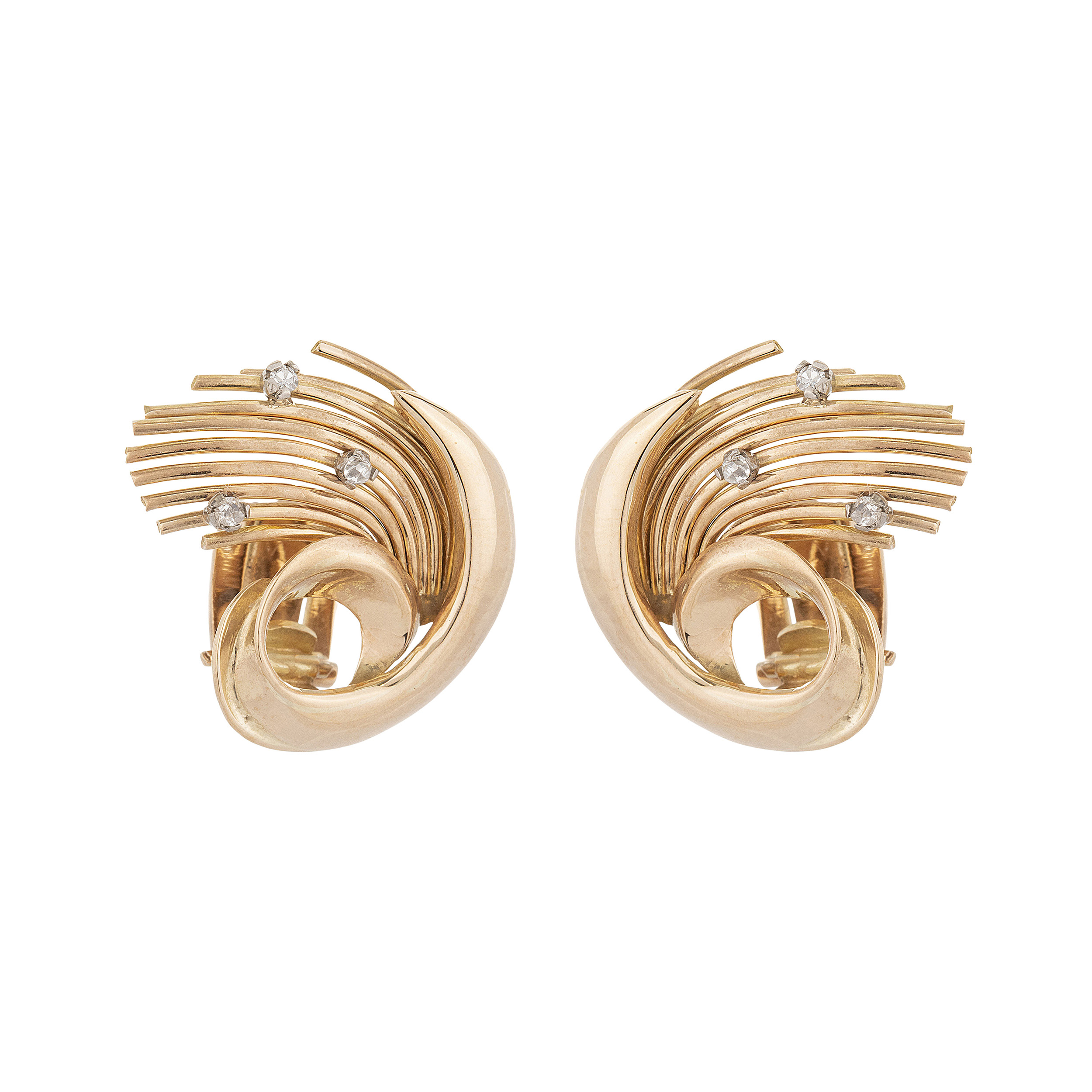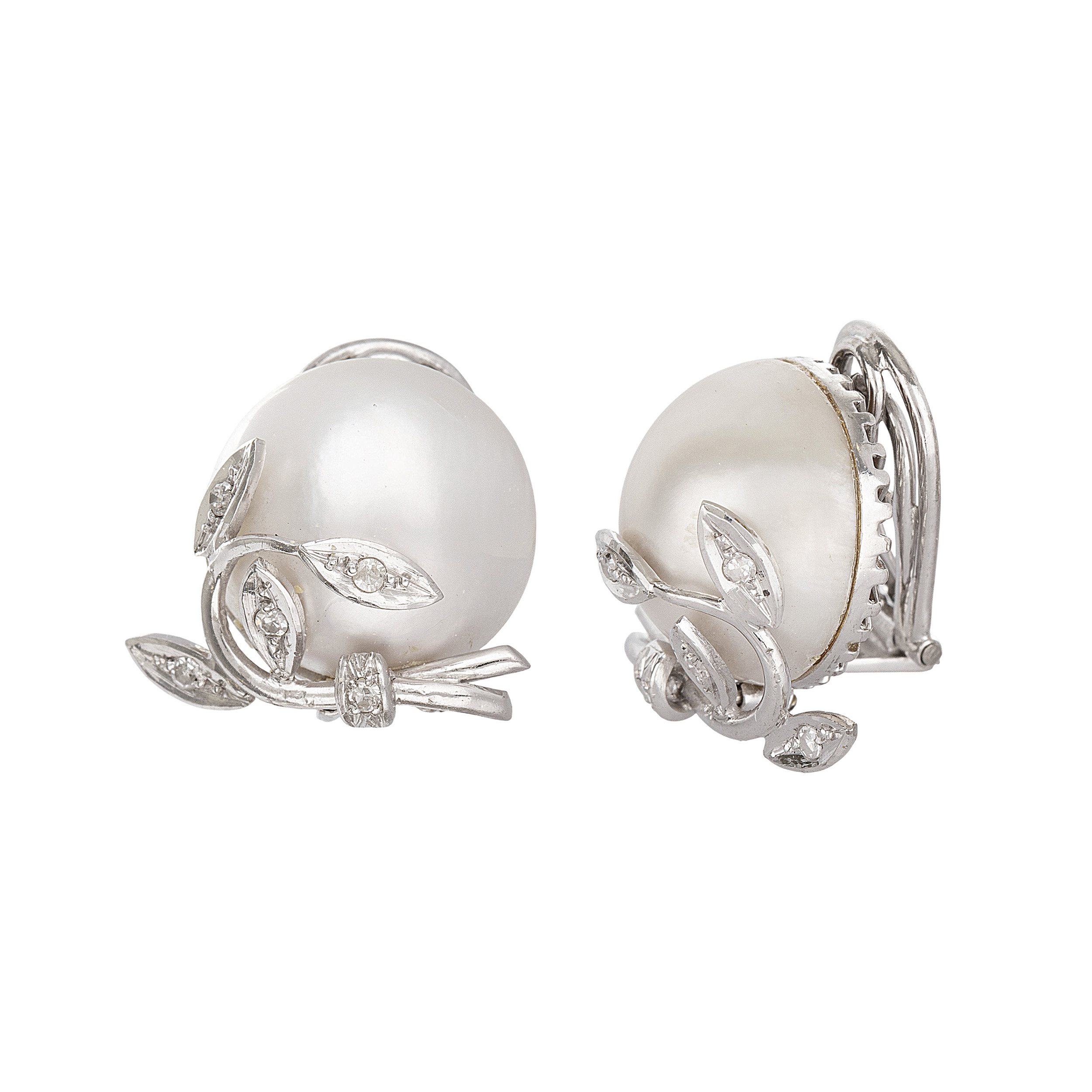 Brinco de ouro amarelo com pérolas (14,9mm), 1,38ct de diamantes (sendo 0,08ct de lapidação brilhante/0,50ct de lapidação princess/0,80ct de lapidação baguete) e 16,7g. Medida 2,5cm.