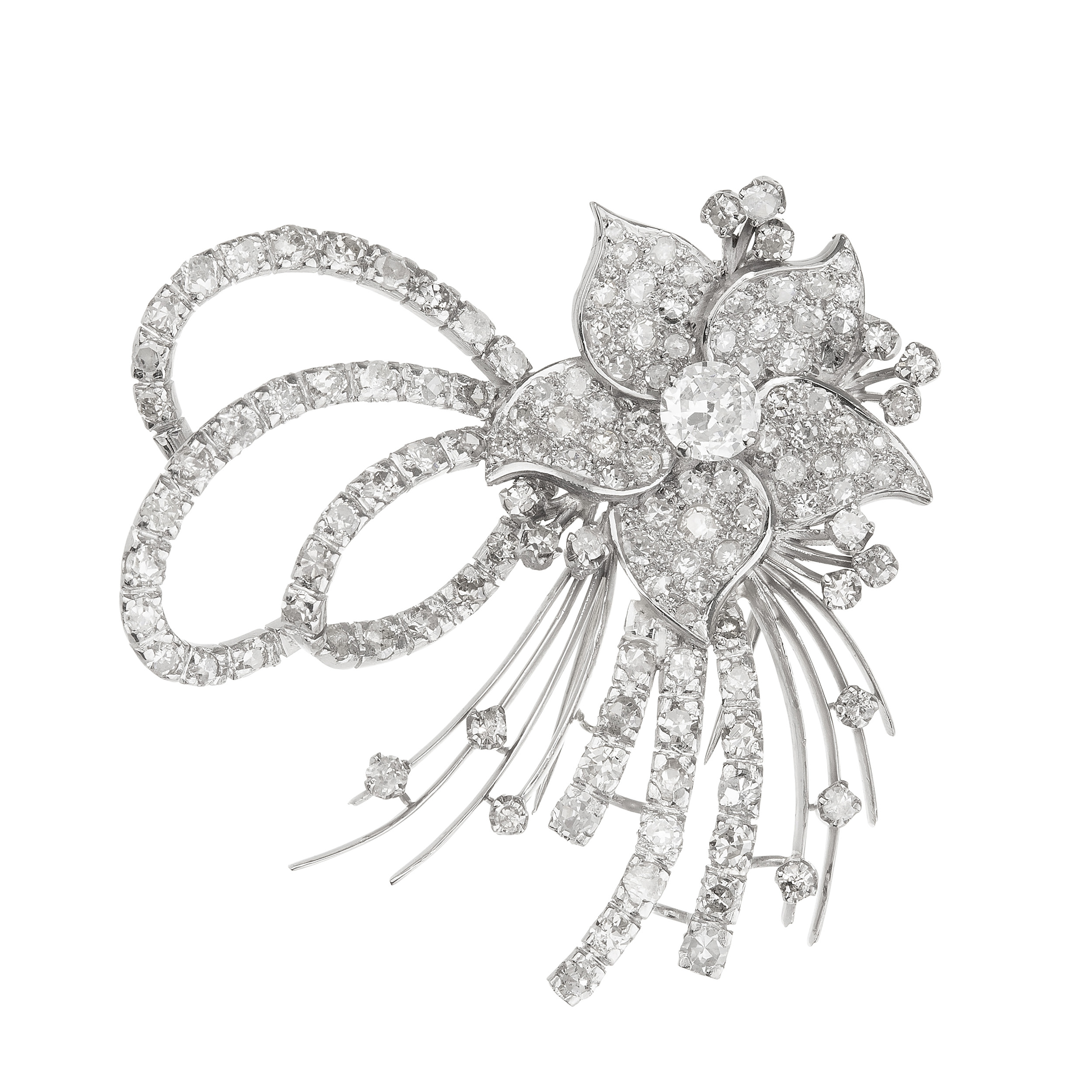 Brinco de ouro branco com 4,65ct de diamantes (sendo 0,85ct de lapidação princess/1,80ct de lapidação navete/2,00ct de lapidação brilhante) e 17,6g. Medida 4,5cm.