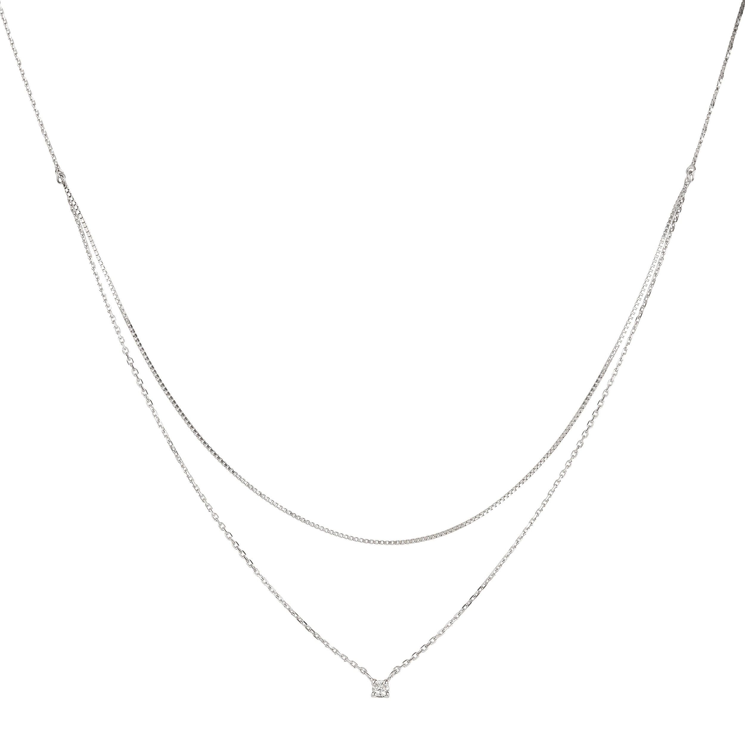 Corrente com pingente de ouro branco e 0,05ct de brilhantes. Medidas 0,2cm/42cm/45cm.