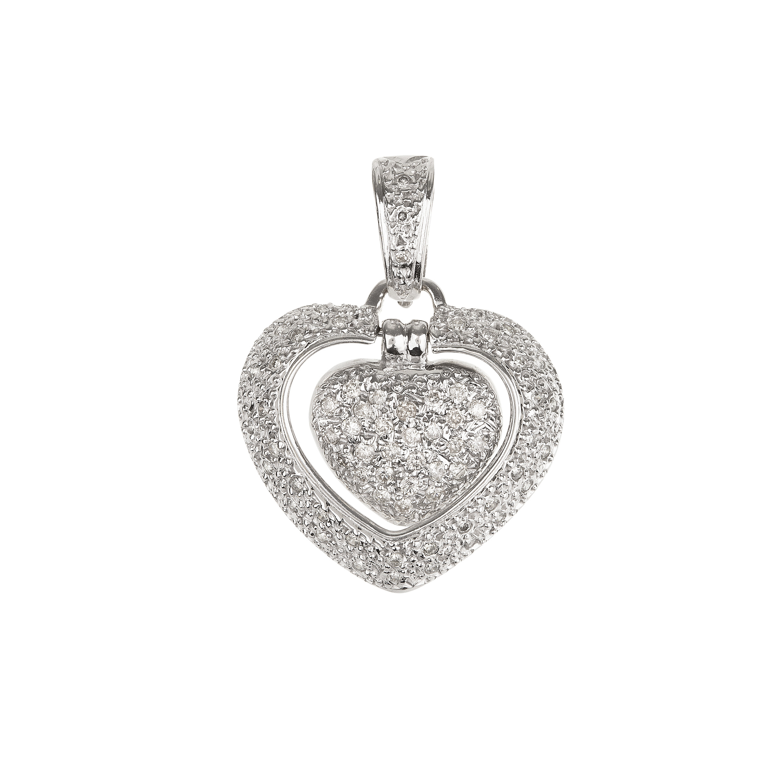 Pingente de ouro branco com 0,62ct de brilhantes e 8,3g. Medida 3,2cm.