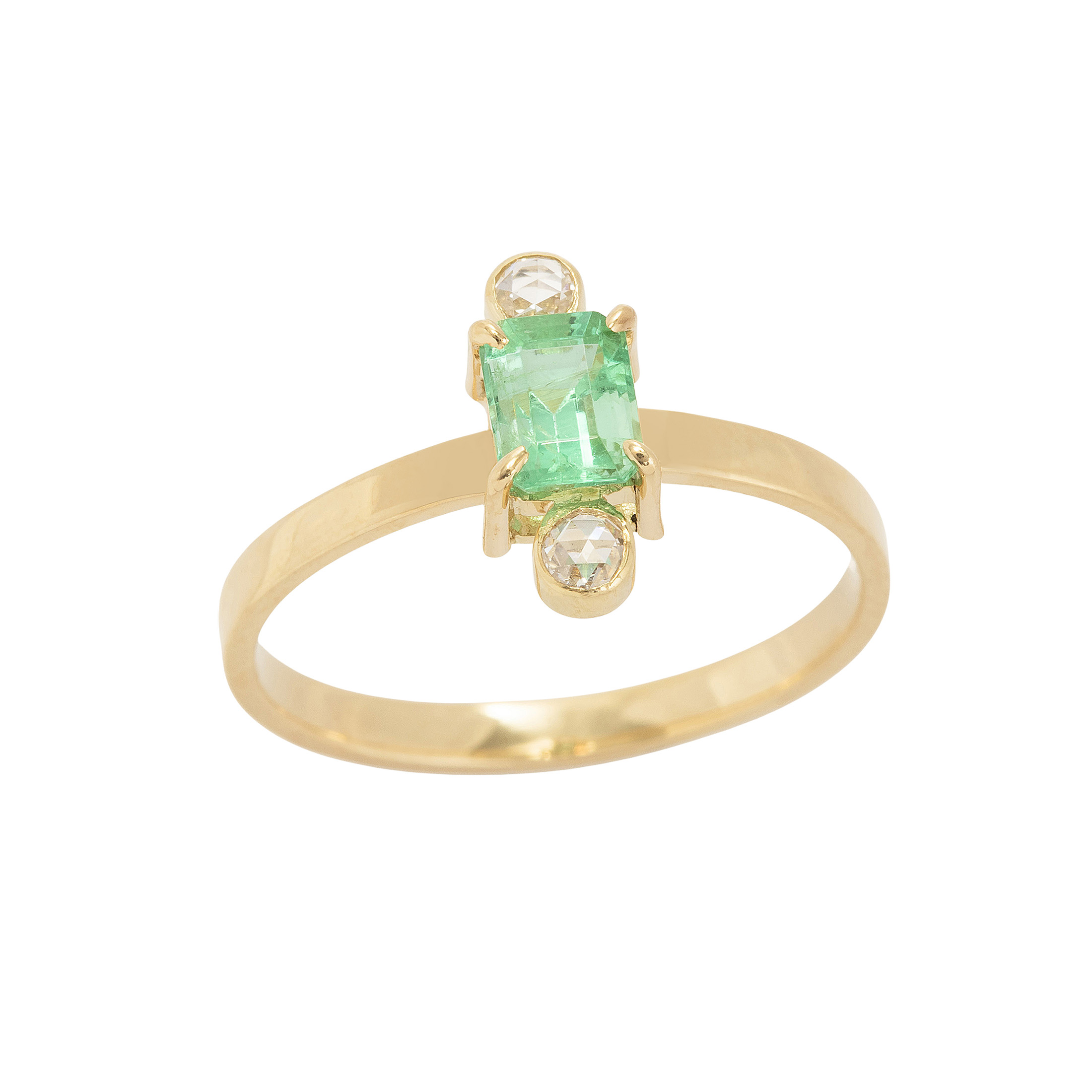 Anel de ouro amarelo com 0,50ct de esmeralda e 0,05ct de brilhantes. Medida 16.