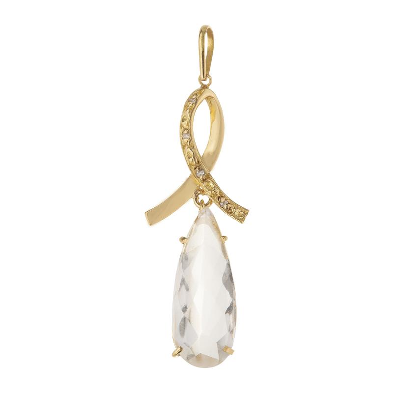 Pingente de ouro amarelo com quartzo e 0,02ct de brilhantes. Medida 4,5cm.