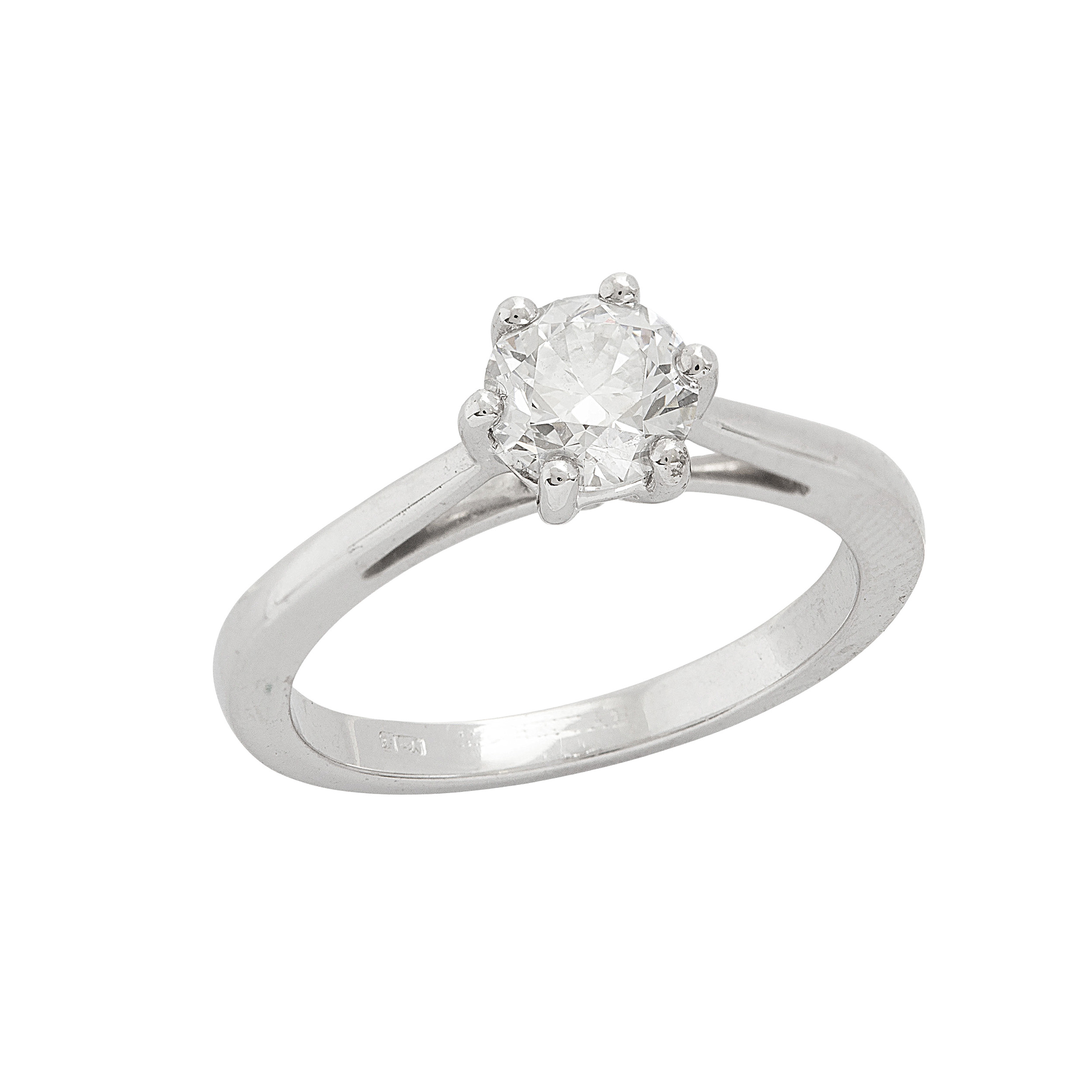 . Anel solitário de ouro branco com 0,90ct de brilhante F/VVS2. Medida 16.