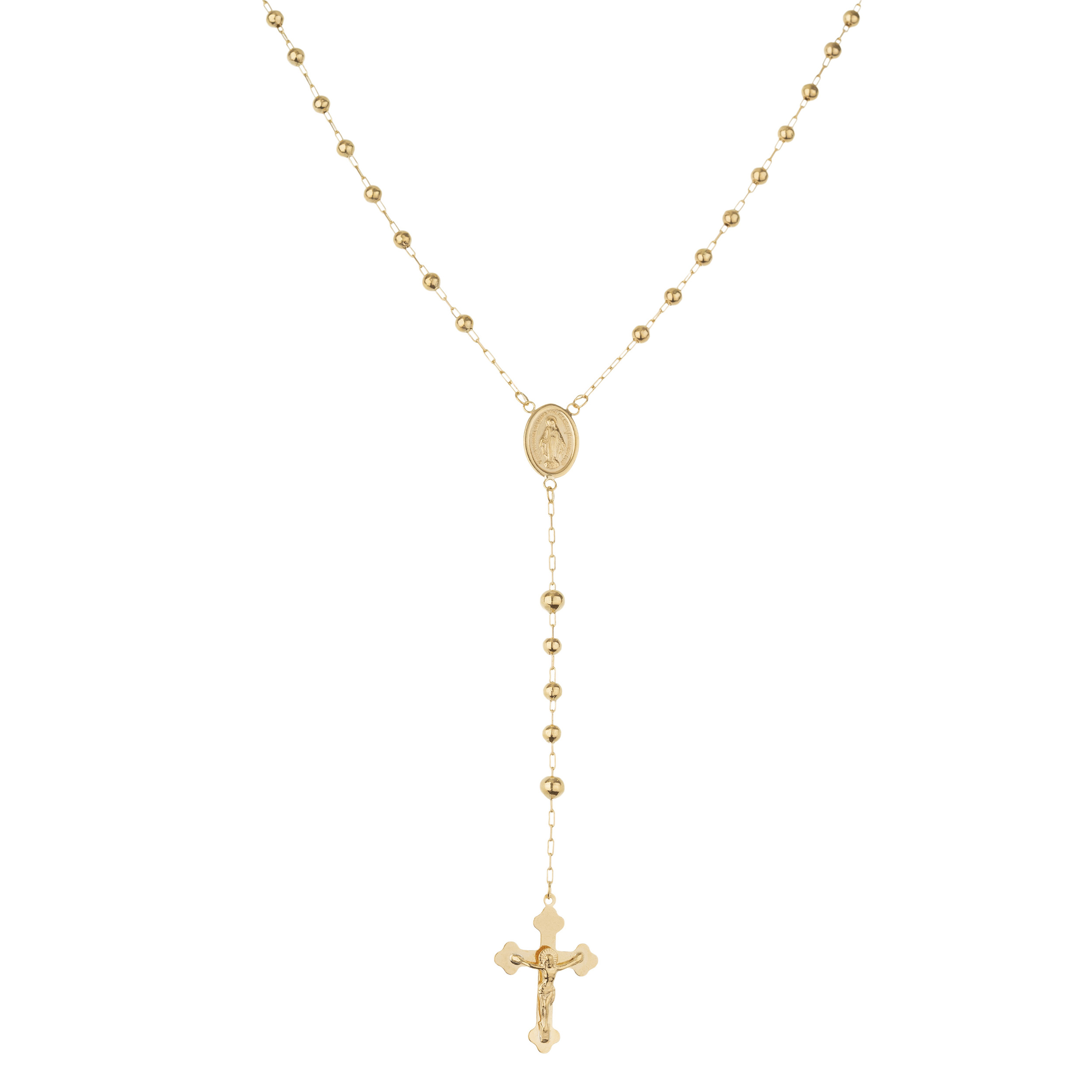 Terço de ouro amarelo com 8,6g. Medidas 10cm/57cm.
