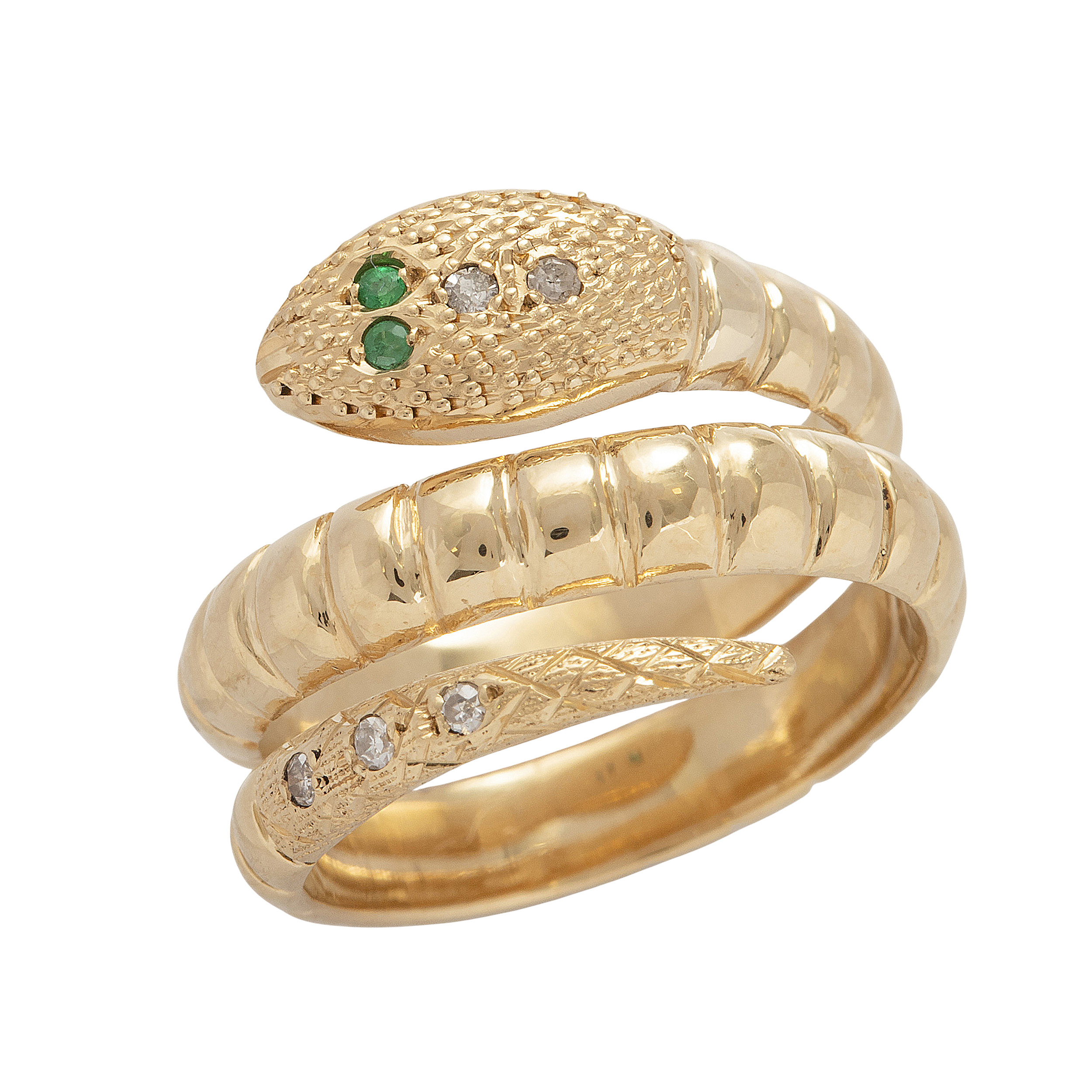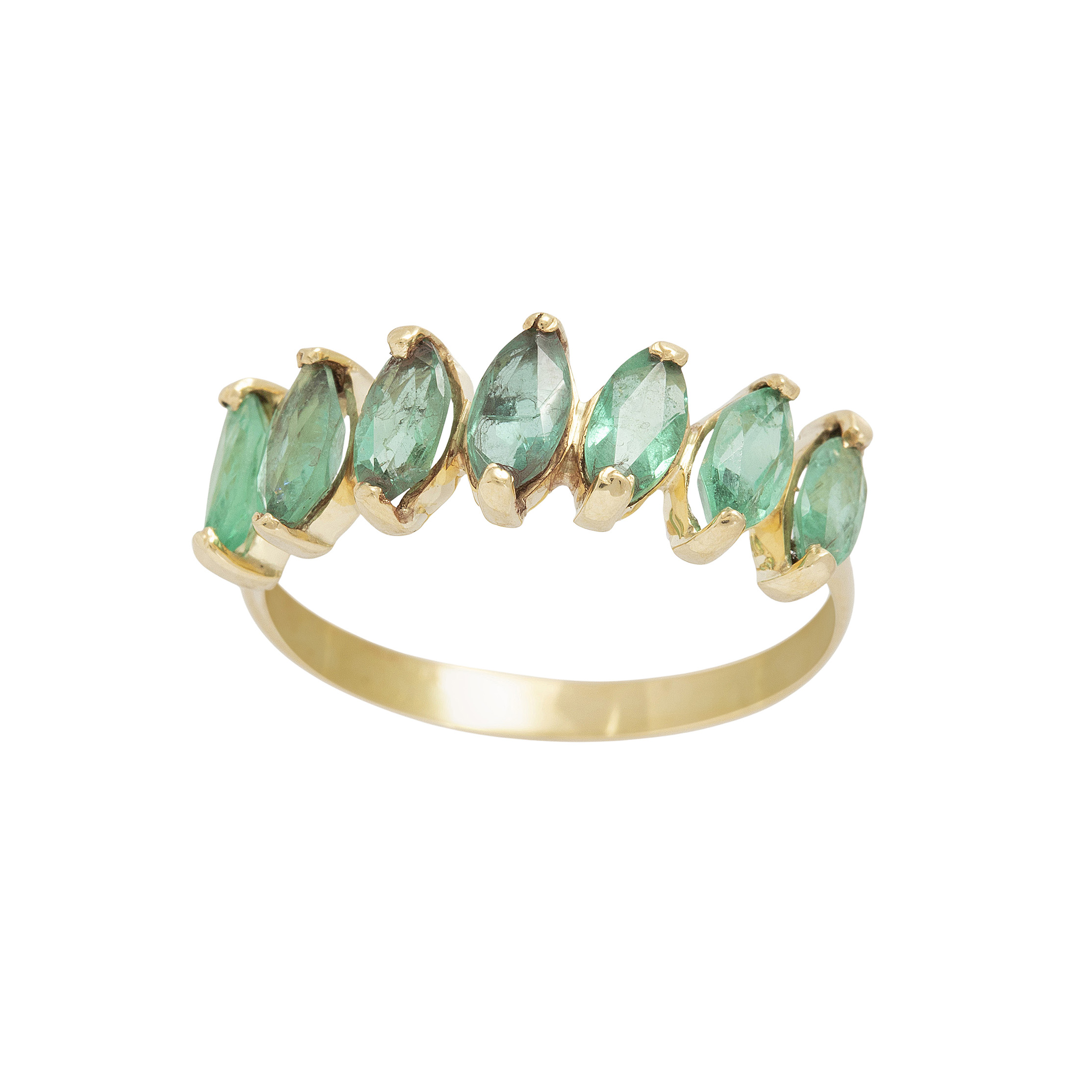 Anel de ouro amarelo com esmeraldas, 0,03ct de brilhantes e 10,7g. Medida 18.