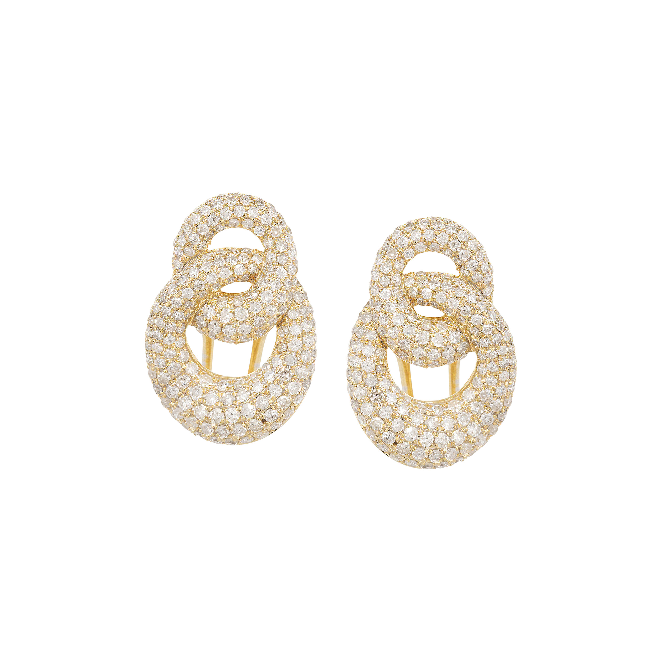 Brinco de ouro amarelo e branco com 0,70ct de brilhantes e 7,3g. Medida 5,9cm.