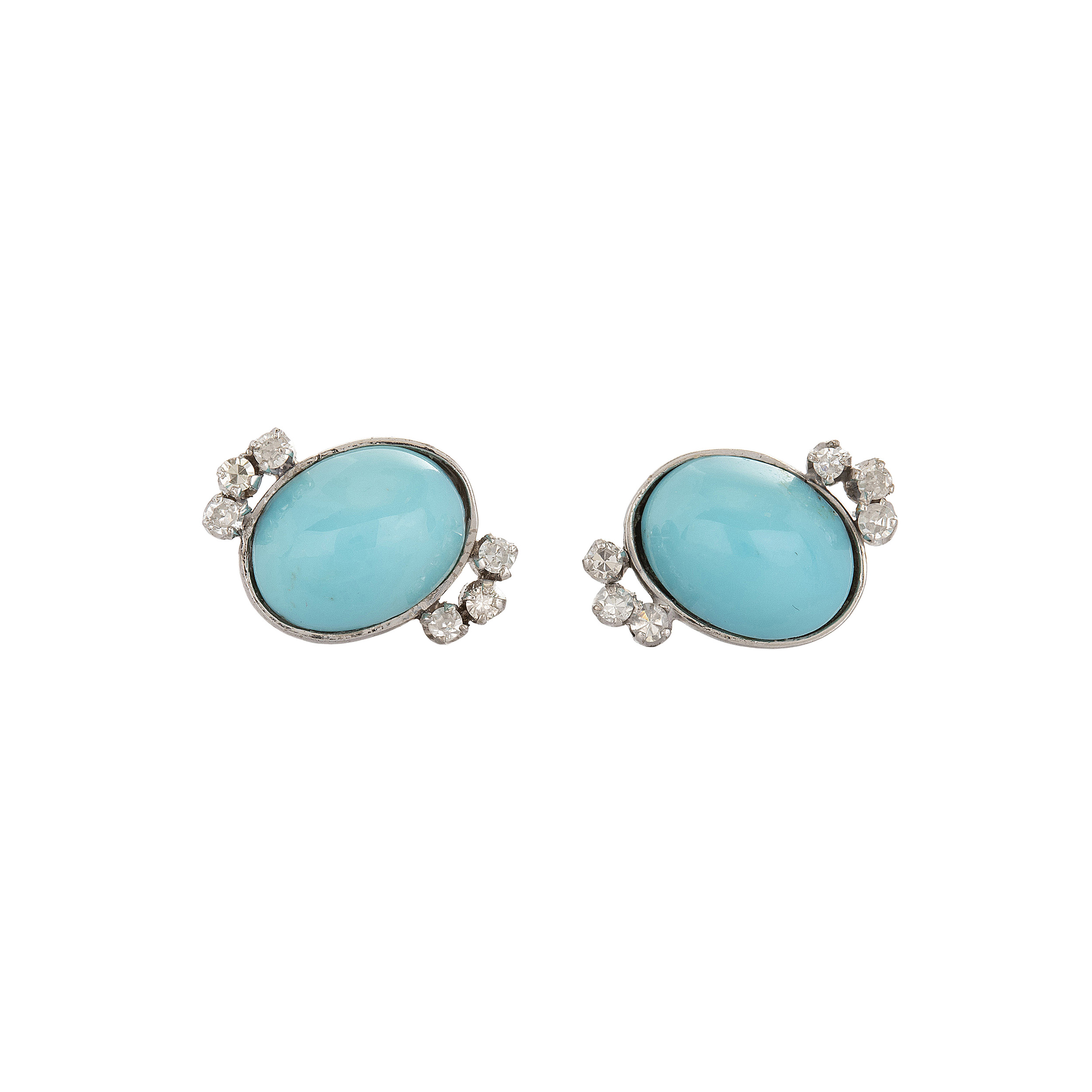 Brinco de ouro branco 14k com 5,44ct de turquesas e 0,30ct de brilhantes. Medida 0,6cm.