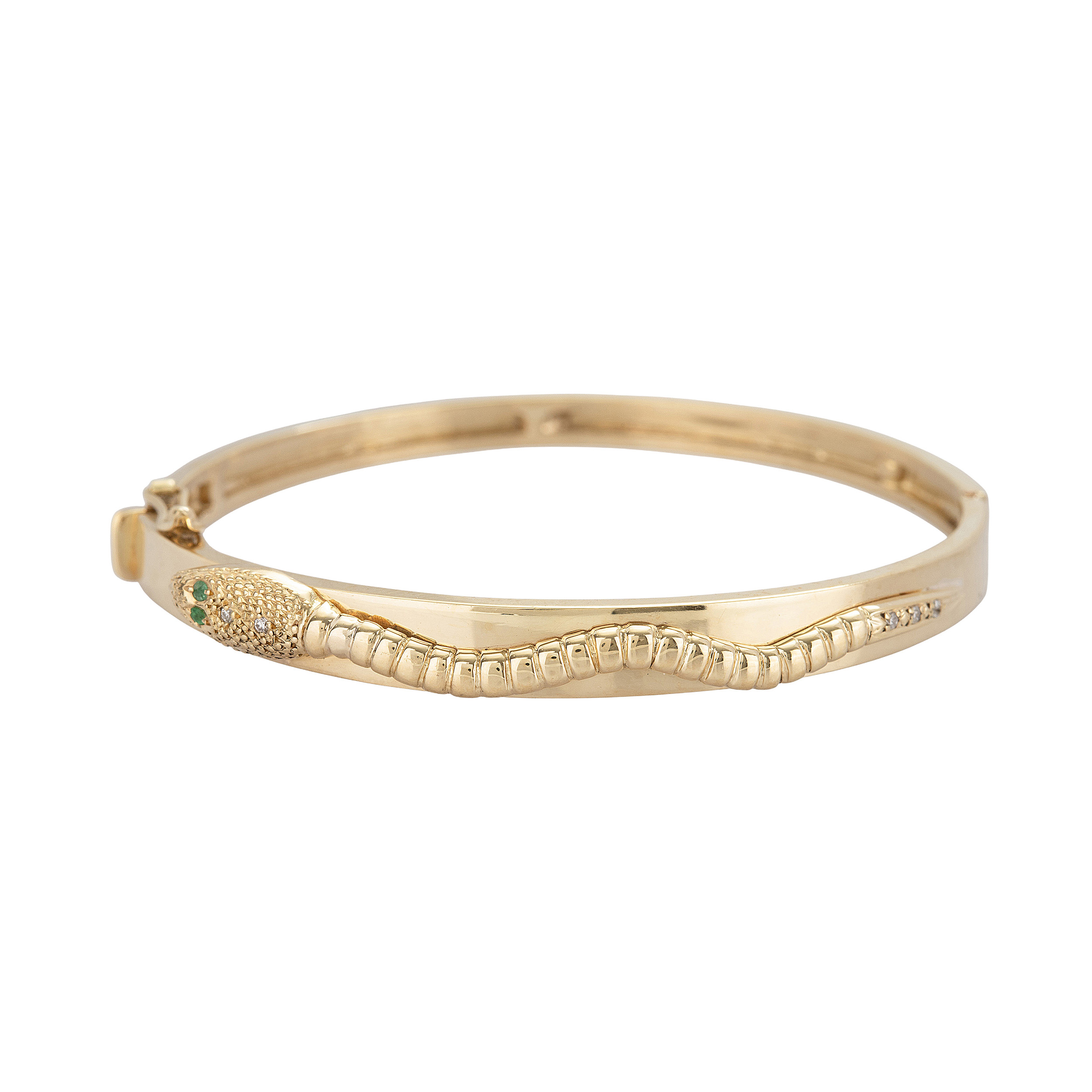 Pulseira de ouro amarelo com esmeraldas, 0,03ct de brilhantes e 24,2g. Medida 18cm.