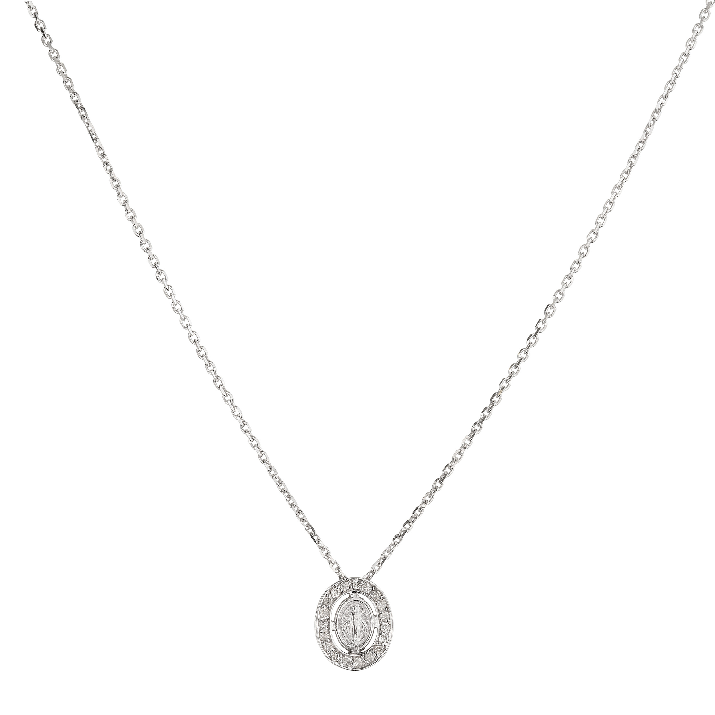Corrente com pingente de ouro branco, 0,20ct de brilhantes e 6,0g. Medidas 1,3cm/45,5cm.