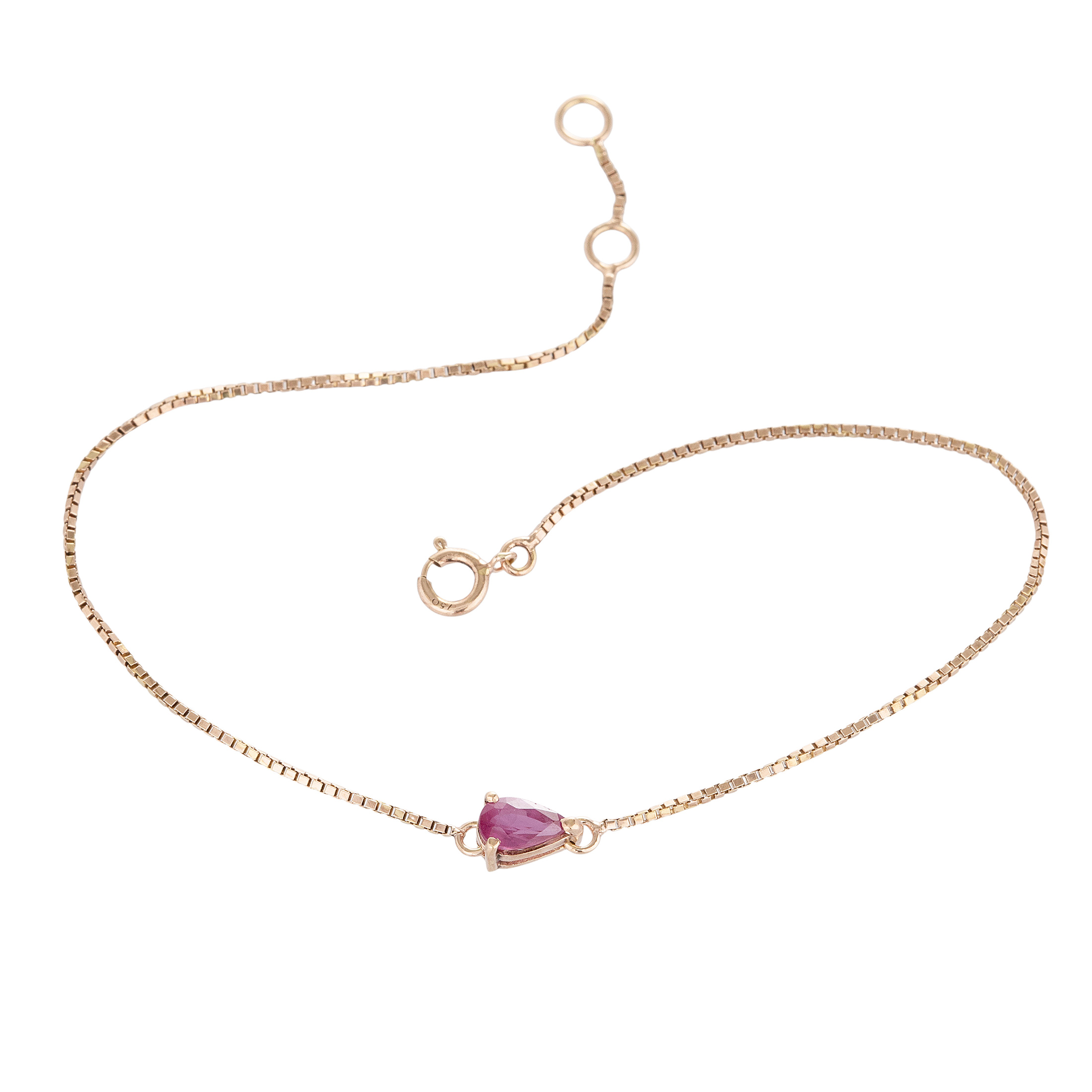 Pulseira de ouro rosé com rubi. Medida 17cm.