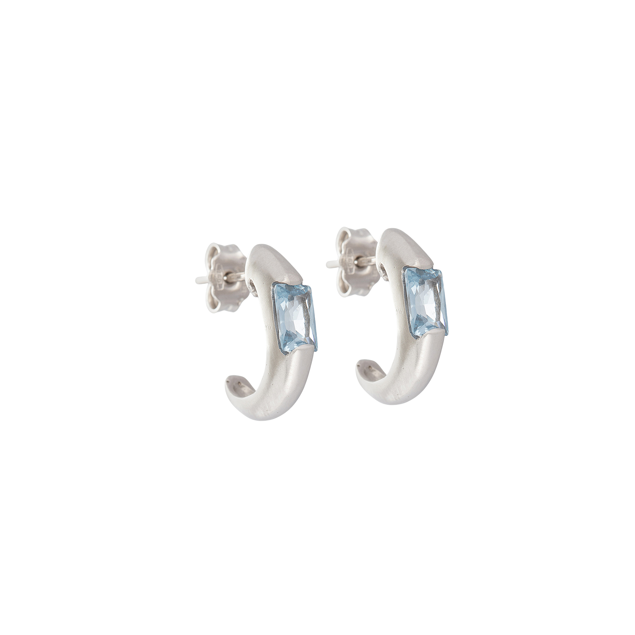 Brinco de ouro branco com topázios. Medida 1,6cm.