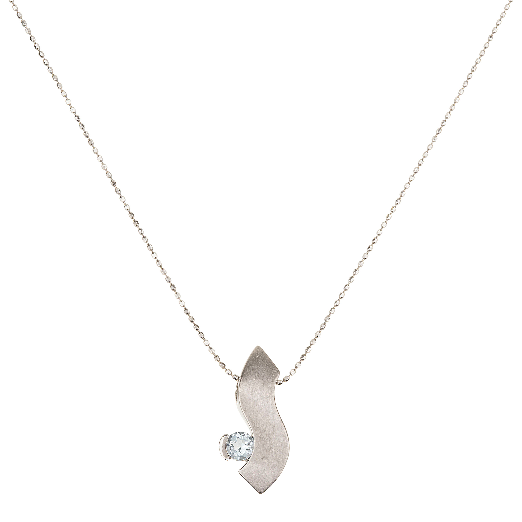 Corrente com pingente de ouro branco e topázio. Medidas 2cm/40cm.