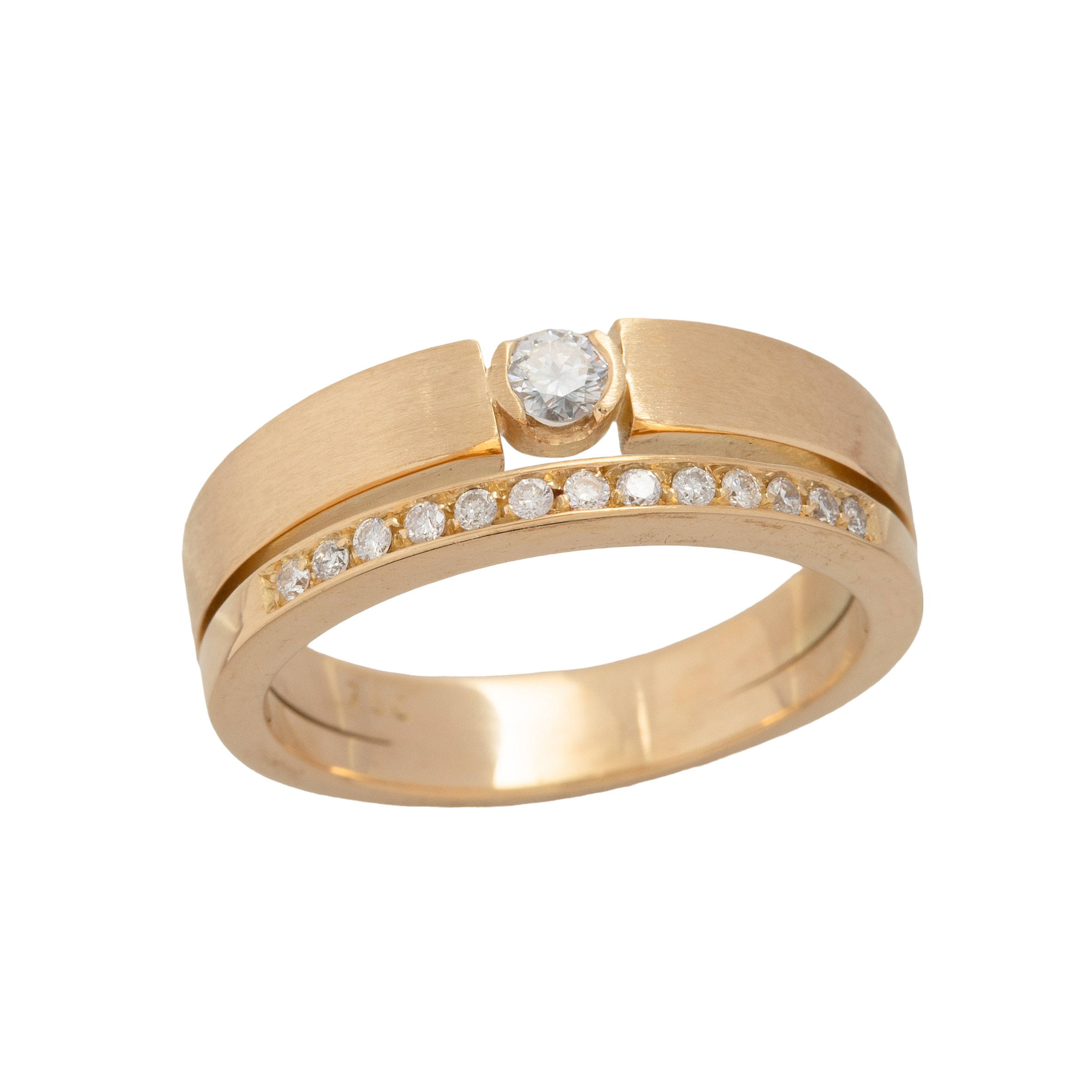 Anel de ouro amarelo com 1,10ct de brilhantes. Medida 21.