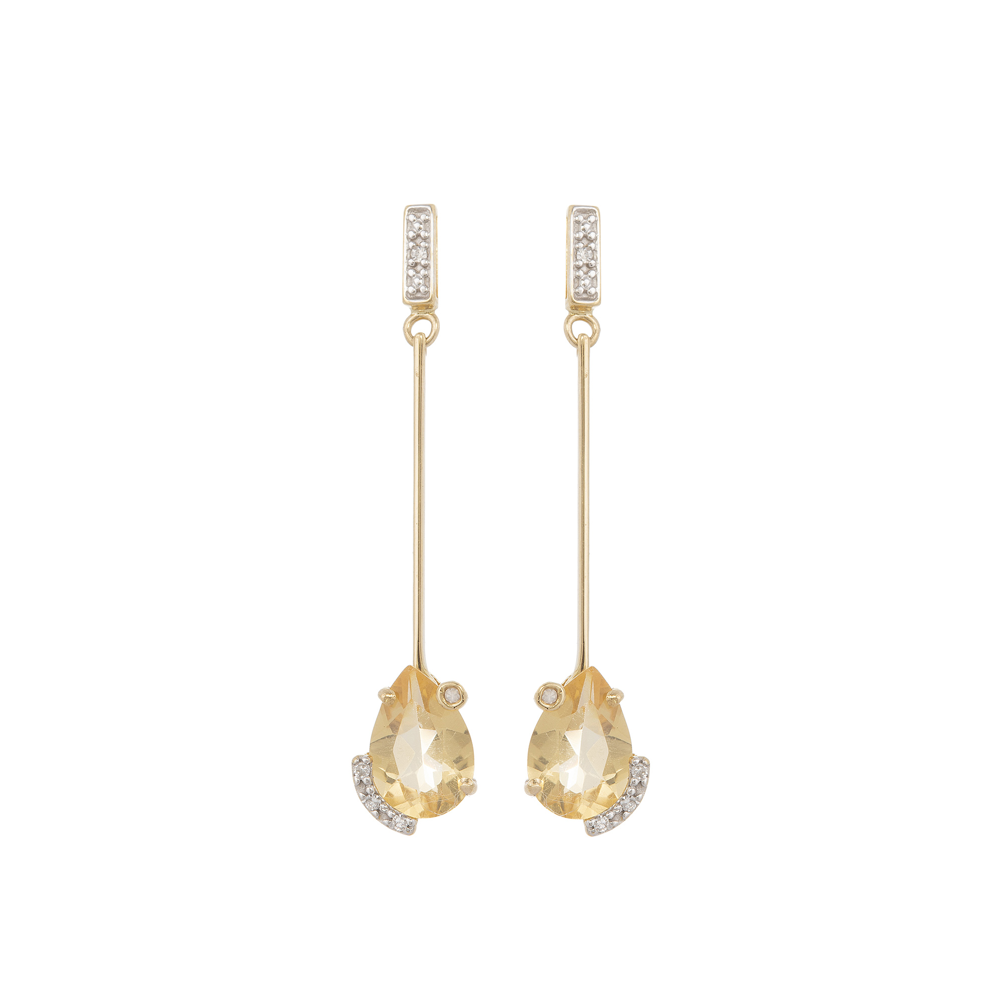 Brinco de ouro amarelo com citrinos e 0,03ct de brilhantes. Medida 3,7cm.