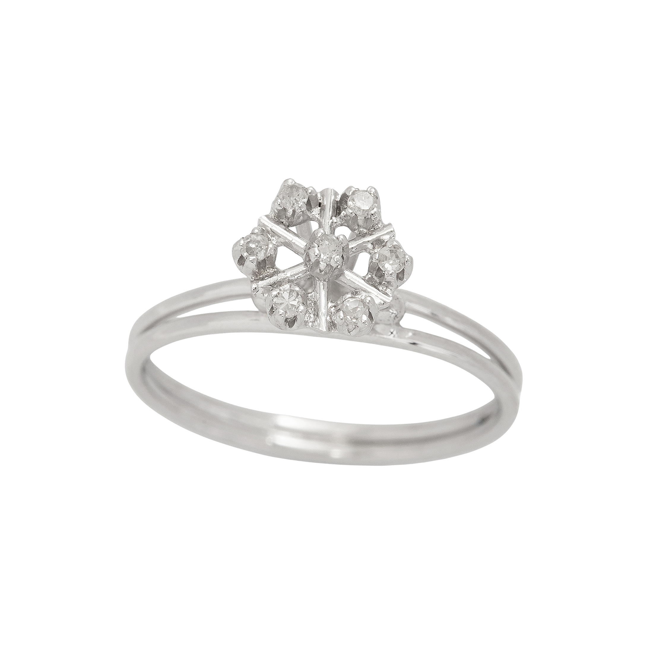 Anel de ouro branco com 0,01ct de brilhantes. Medida 14.