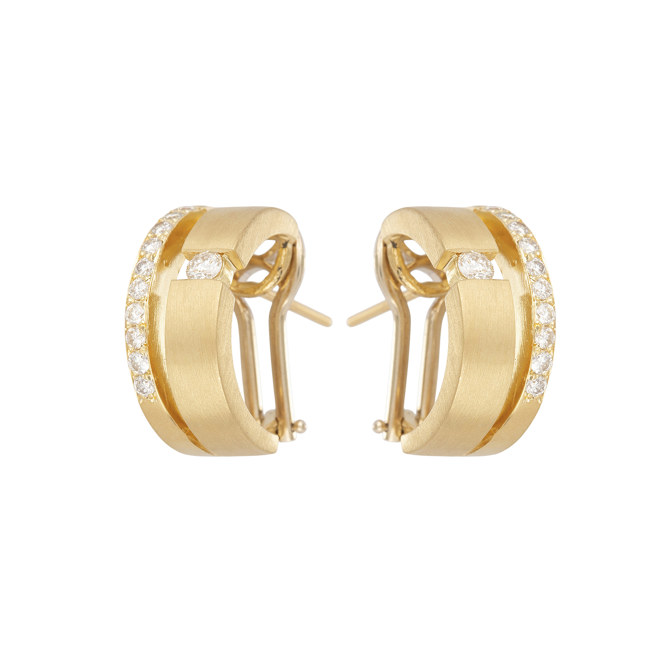 Brinco de ouro amarelo com 0,50ct de brilhantes e 9,8g. Medida 1,5cm.