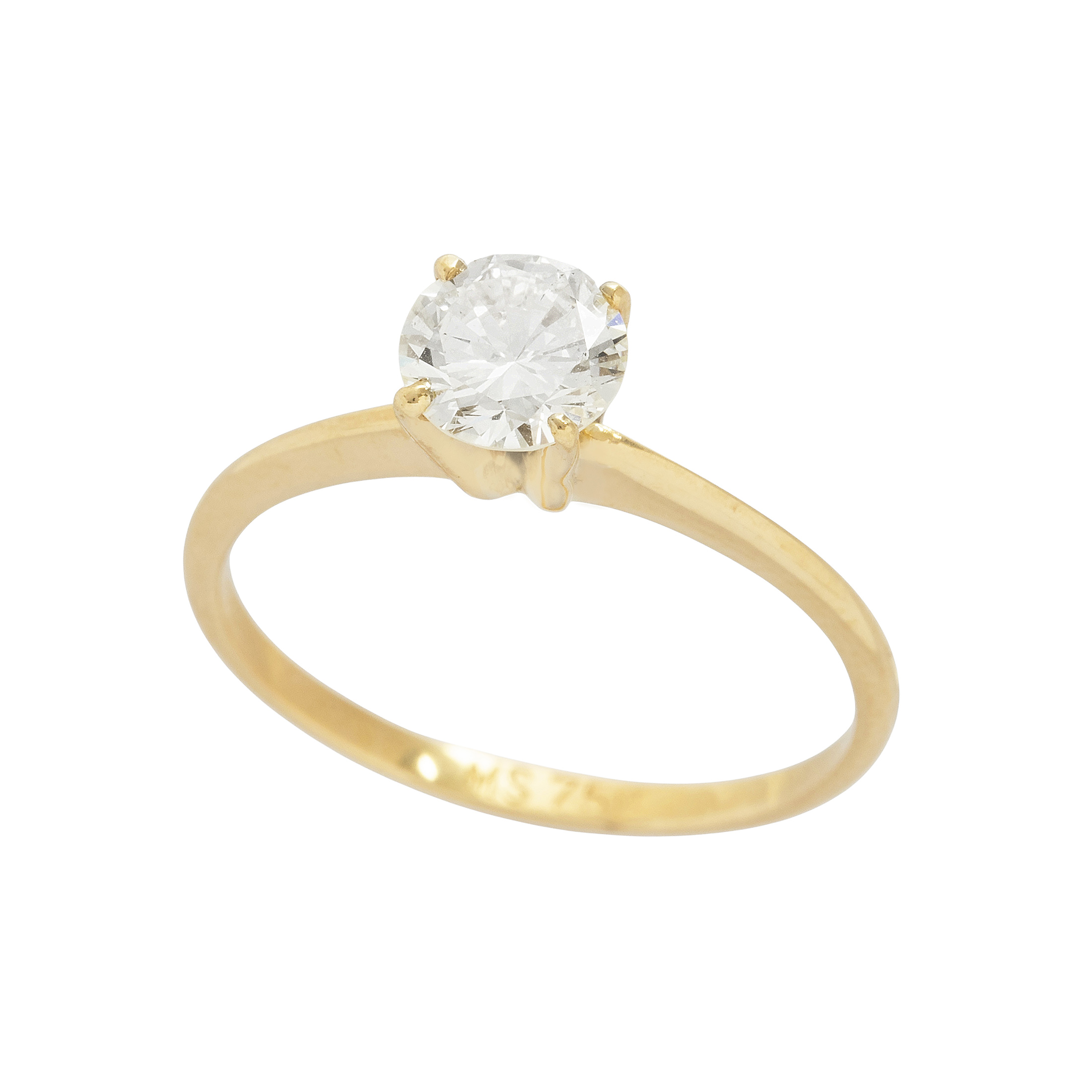 Anel solitário de ouro amarelo com 0,68ct de brilhante M/SI. Medida 16.