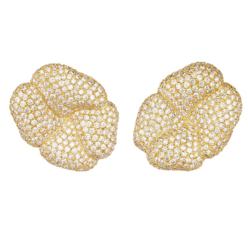Brinco de ouro amarelo com 4,30ct de brilhantes e 20,0g. Medida 2,5cm.