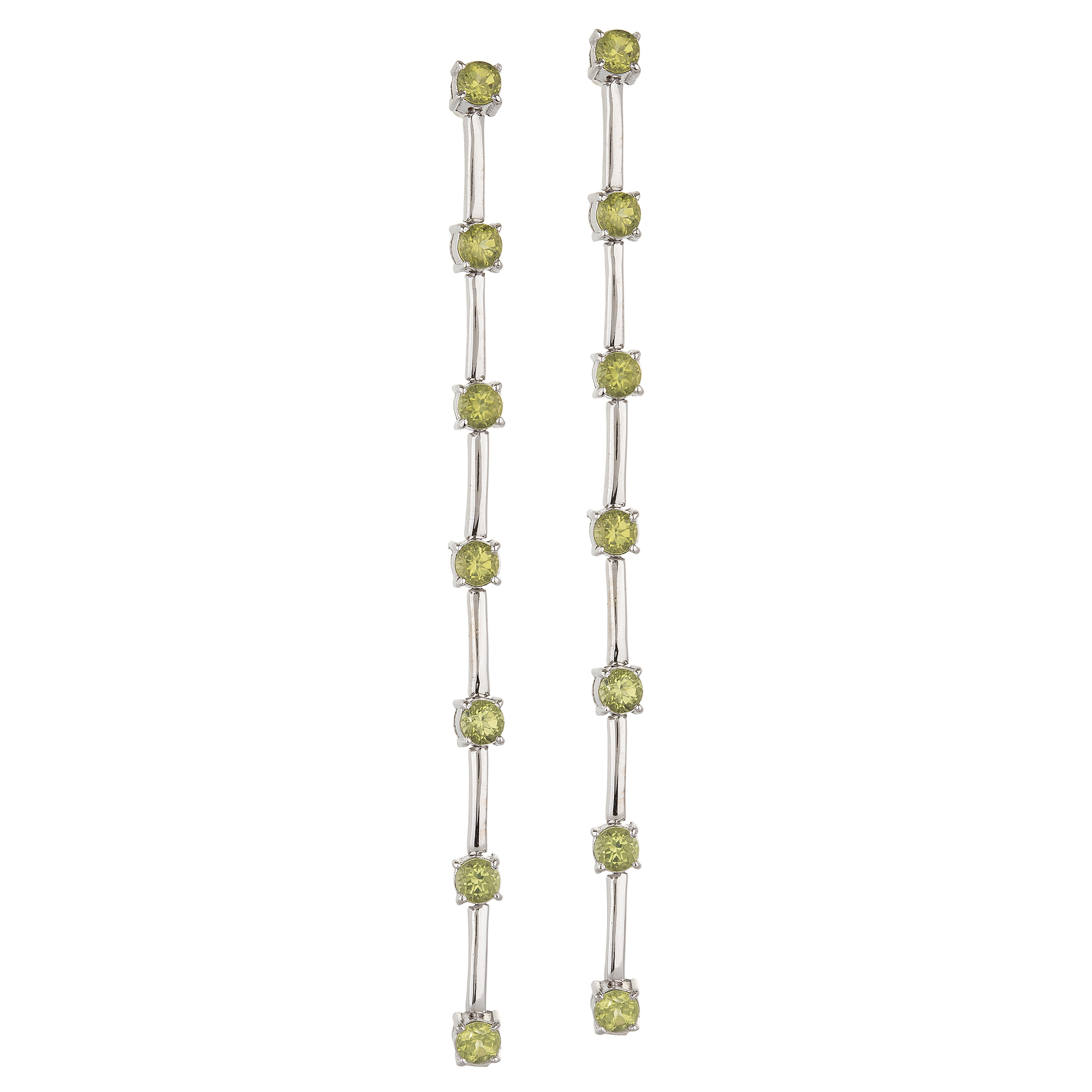 Brinco de ouro branco com peridotos e 10,4g. Medida 7,8cm.