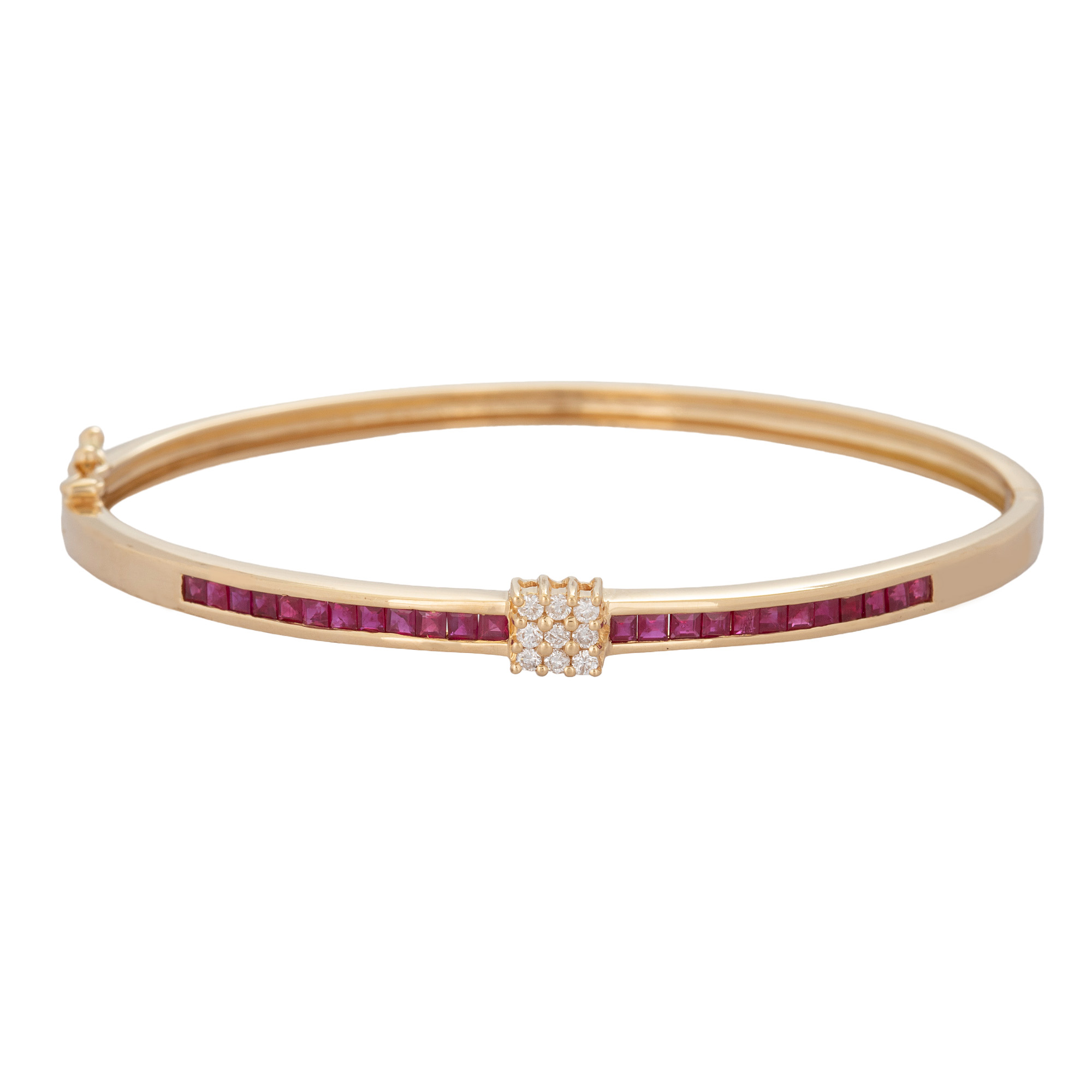 Pulseira de ouro amarelo com rubis, 0,25ct de brilhantes e 15,7g. Medida 17cm.