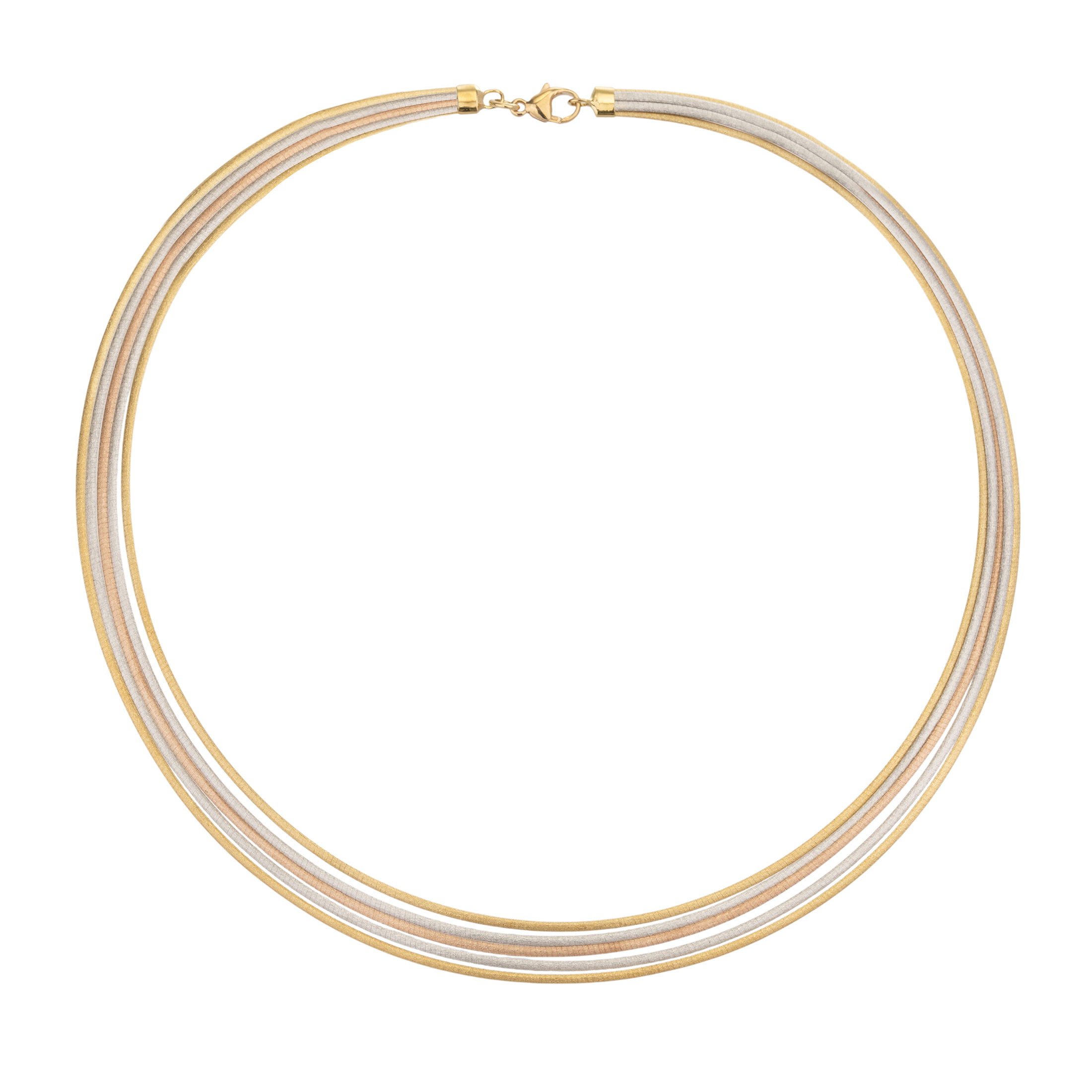 Gargantilha de ouro amarelo, branco, rosé com 30,4g. Medida 40cm.