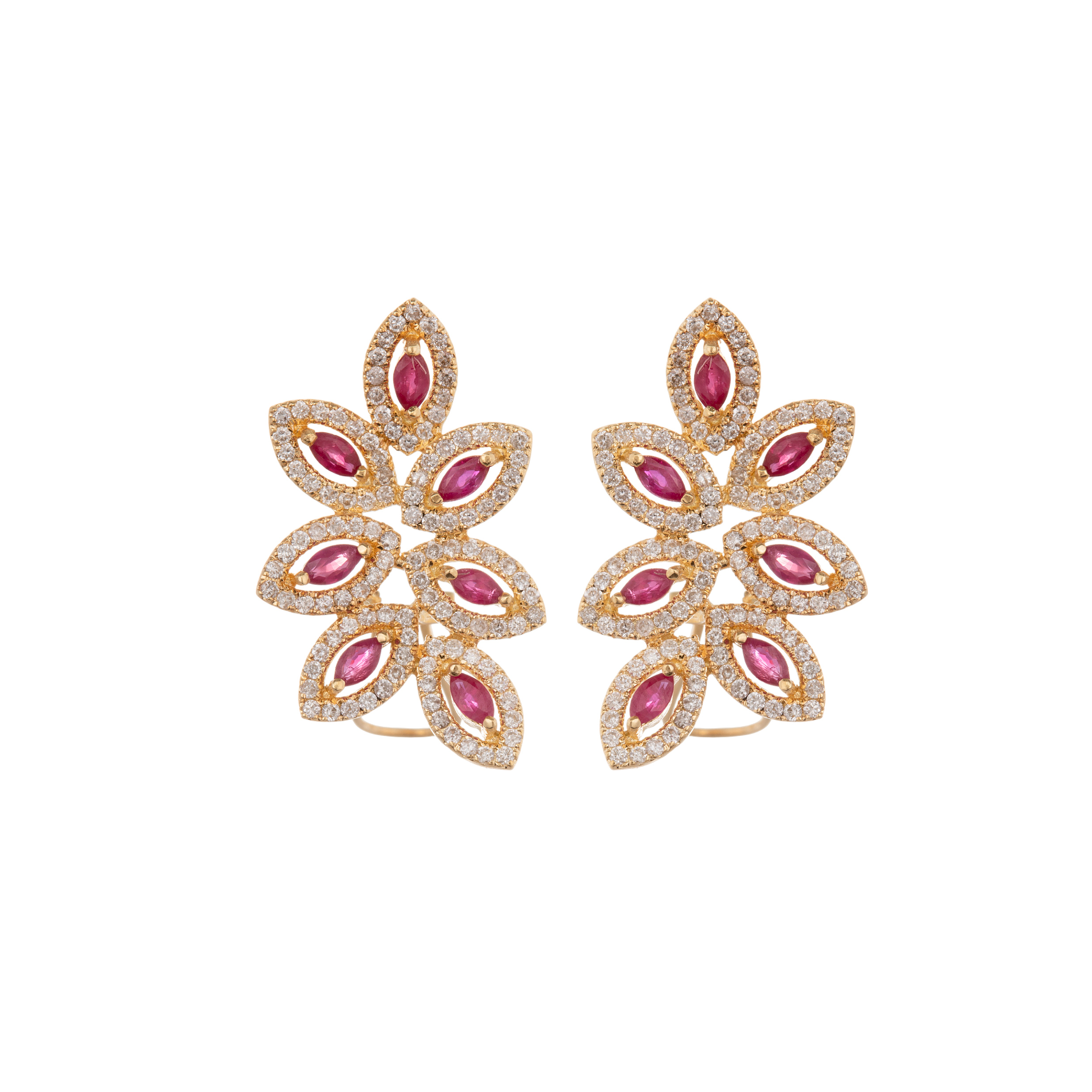 Brinco de ouro amarelo com 1,79ct rubis, 1,60ct de brilhantes I/SI e 9,0g. Medida 3cm.