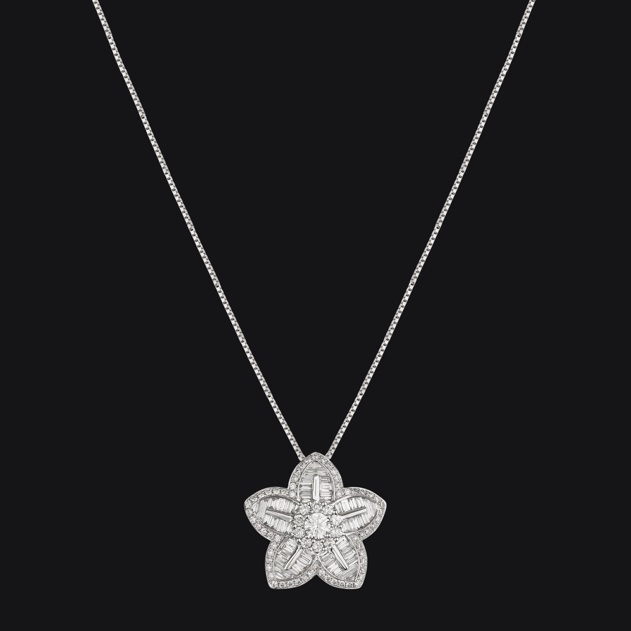Corrente com pingente de ouro branco e 0,85ct de diamantes. Medidas 1,8cm/44cm.
