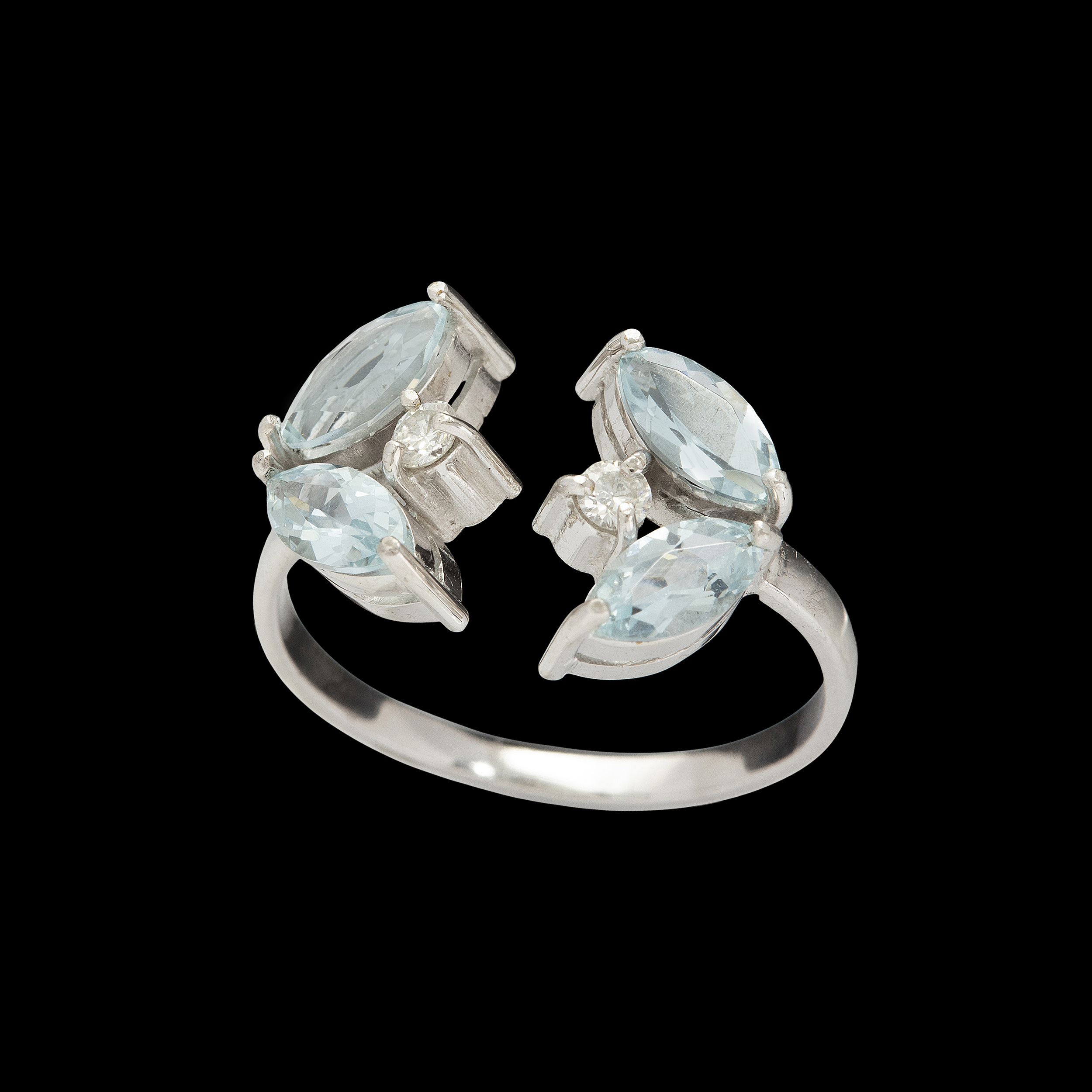 Anel de ouro branco com topázios e 0,08ct de brilhantes. Medida 17.