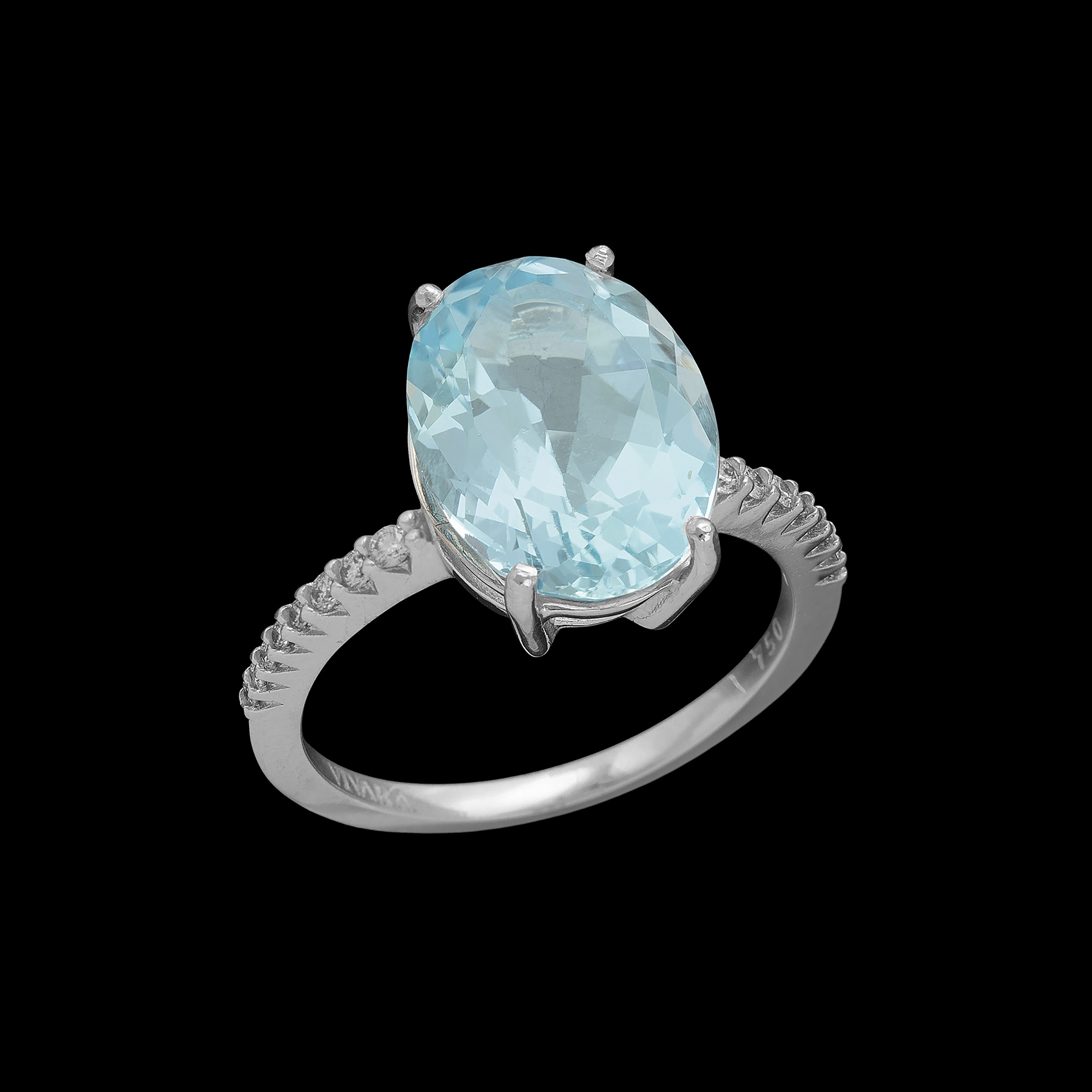 VIVARA. Anel de ouro branco com 6,90ct de topázio e 0,15ct de brilhantes. Medida 17.
