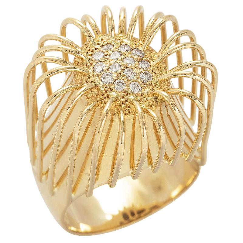 CARLA AMORIM. Anel de ouro amarelo com 0,14ct de brilhantes e 16,7g. Medida 21.