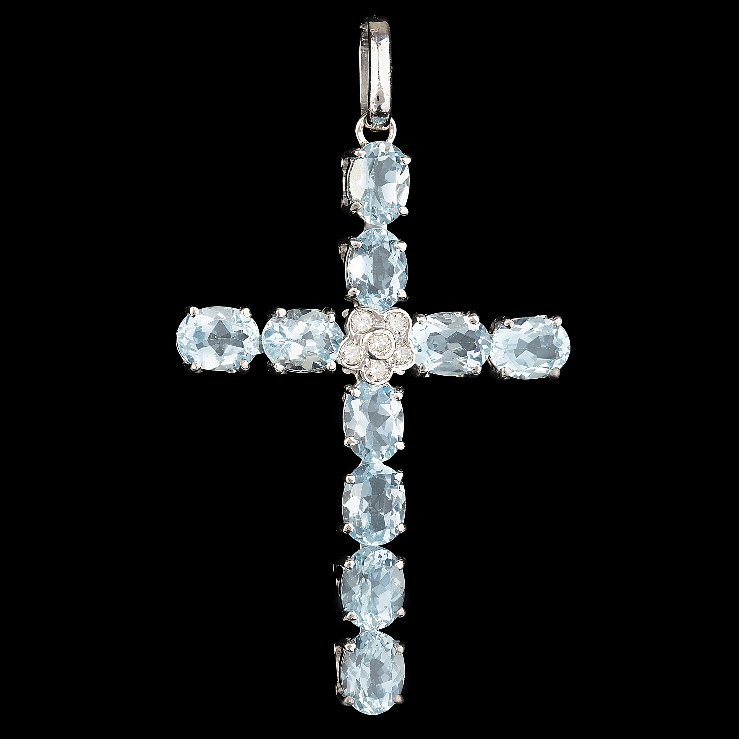 Pingente de ouro branco com topázios, 0,18ct de brilhantes e 12,6g. Medida 3,6x6,5cm.