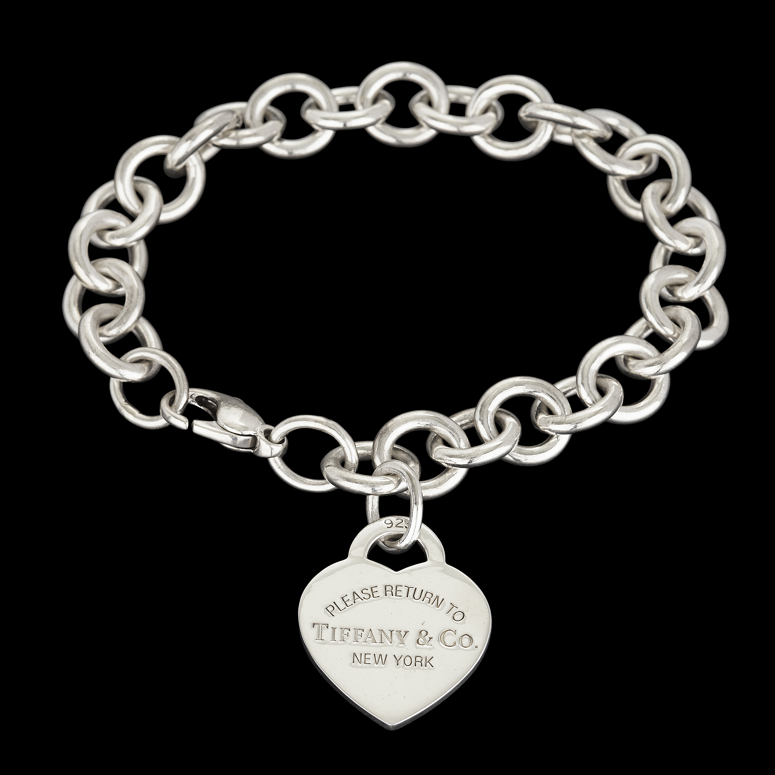 TIFFANY & CO. Pulseira com pingente Return to Tiffany de prata 925. Medidas 2,5cm/19cm.