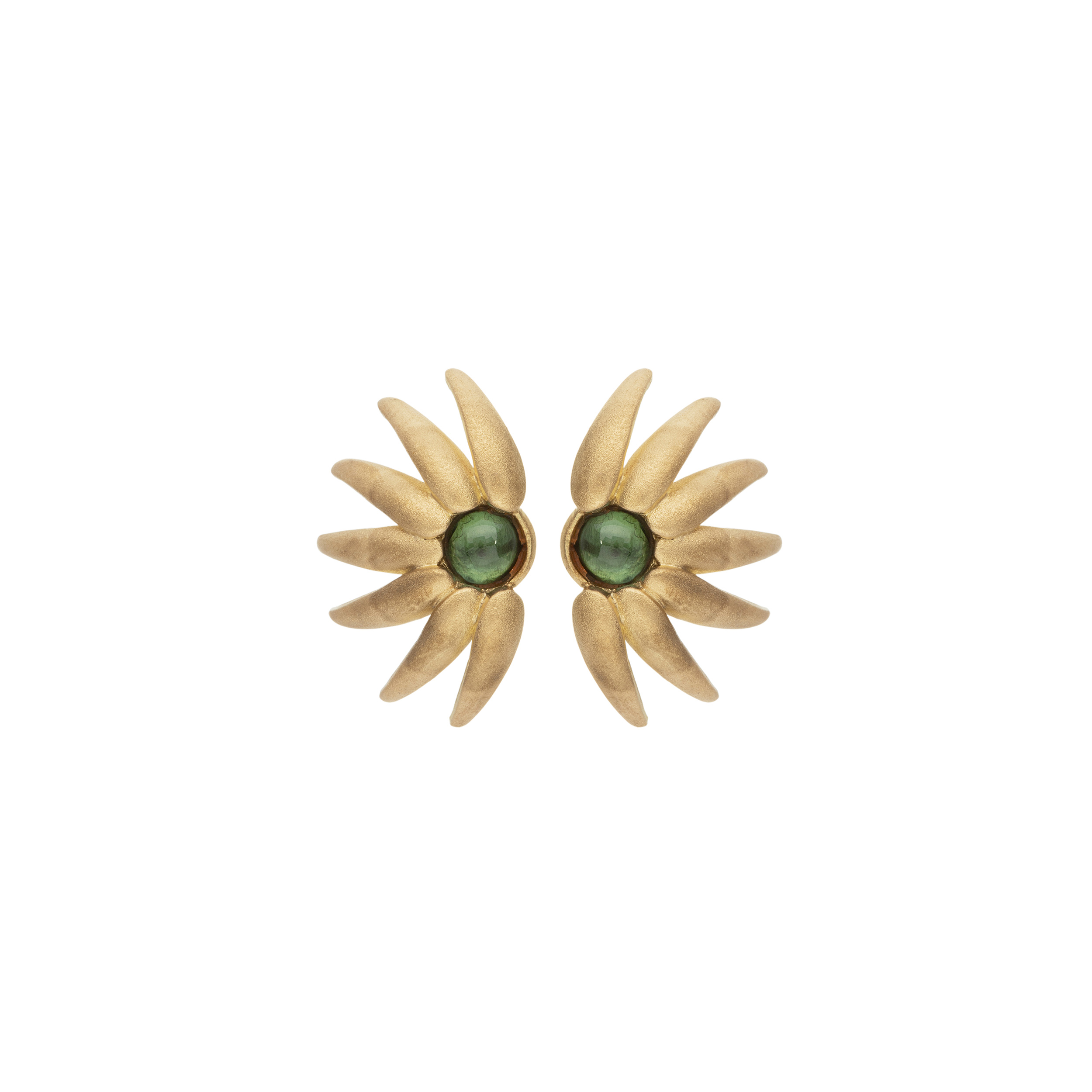 ANTONIO BERNARDO. Brinco de ouro amarelo com turmalinas verdes. Medida 1,3cm.