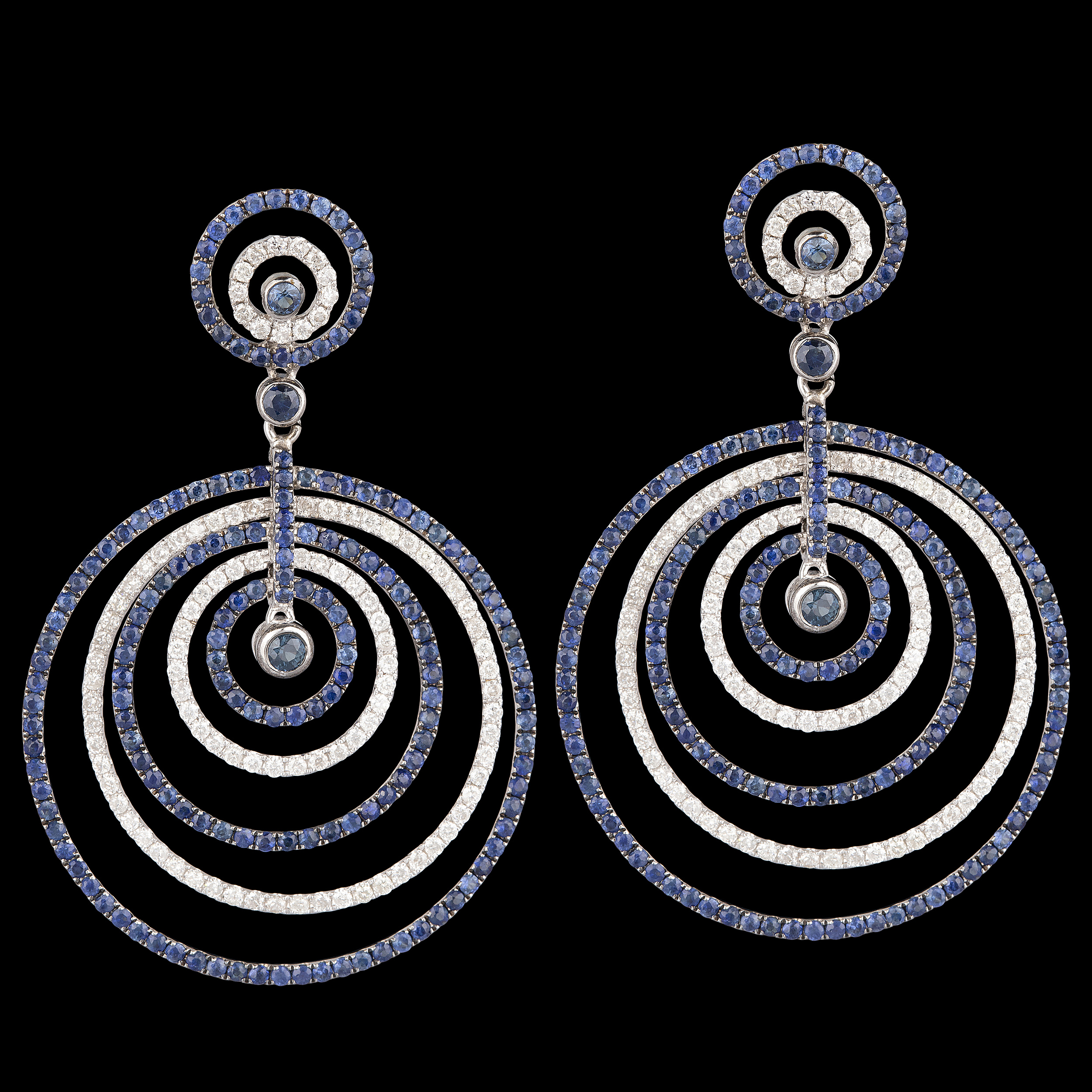 Brinco de ouro branco com safiras, 1,61ct de brilhantes e 13,5g. Medida 5cm.