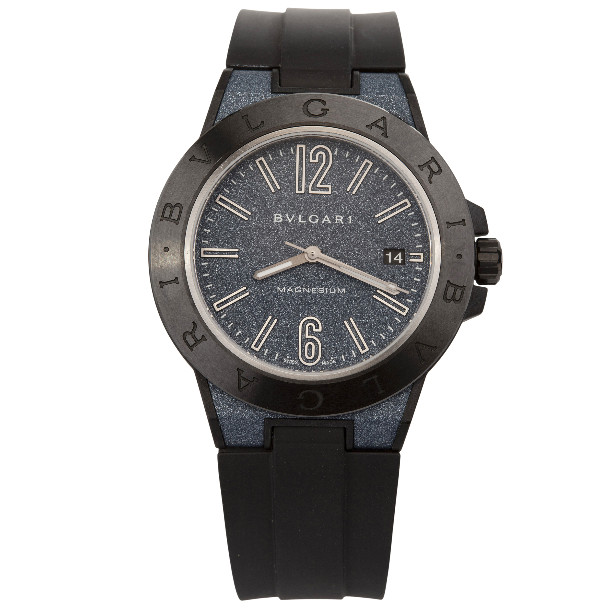 BVLGARI. Relógio Diagono Magnesium de cerâmica com movimento automático, calendário, vidro de safira, anos 2010. Caixa 41mm. Pulseira de borracha 22cm.