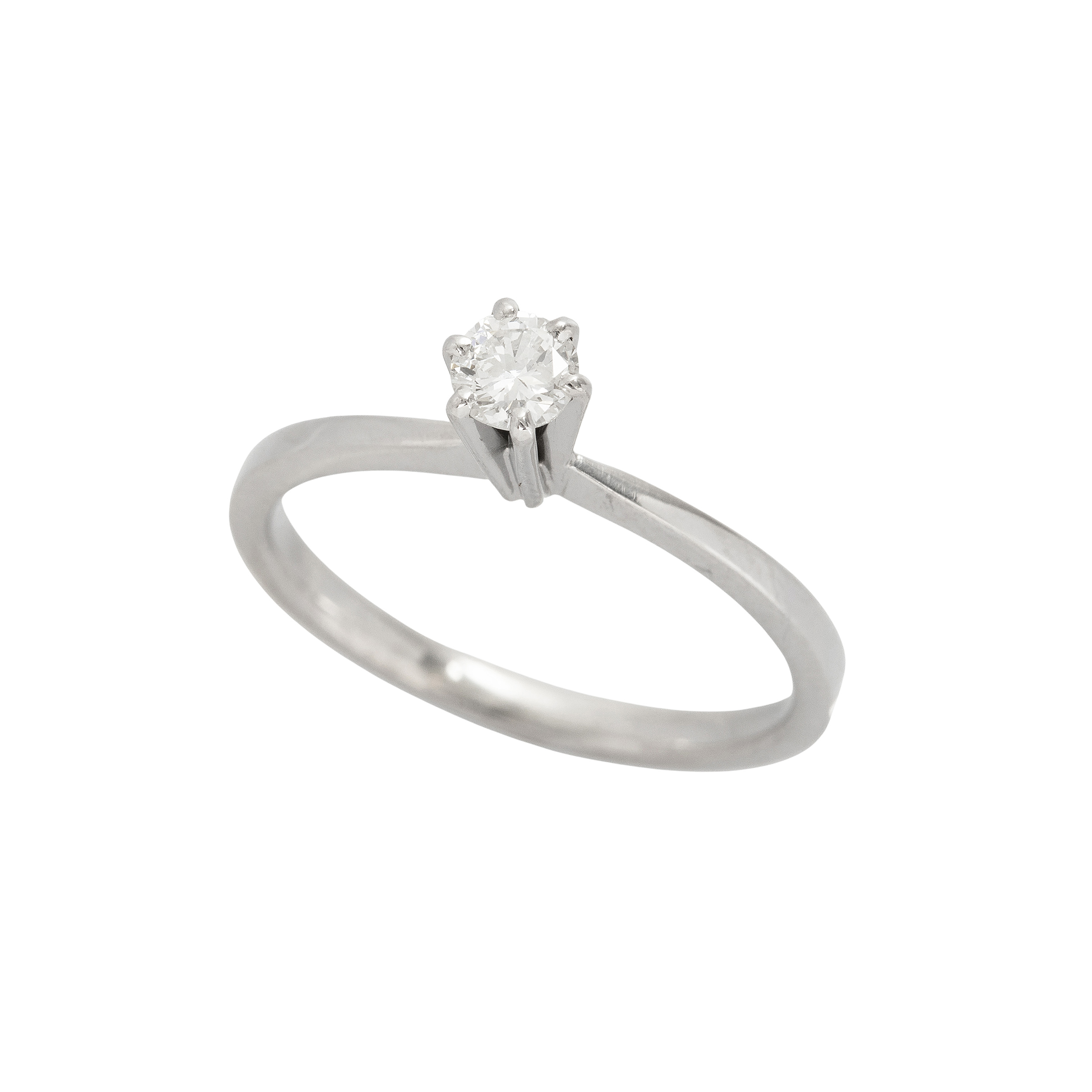 Anel solitário de ouro branco com 0,23ct de brilhante. Medida 16.