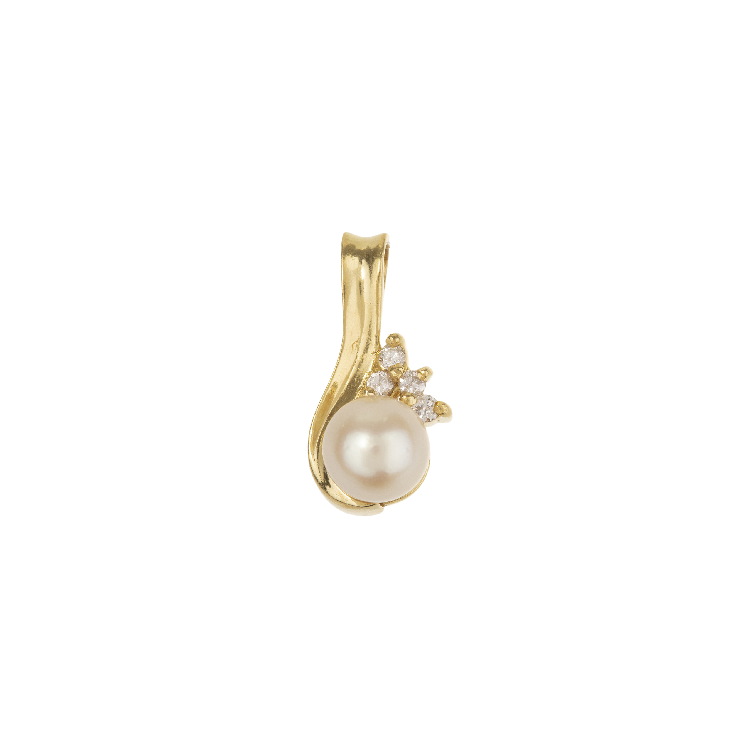 Pingente de ouro amarelo com pérola (7,25mm) e 0,12ct de brilhantes. Medida 1,9cm.