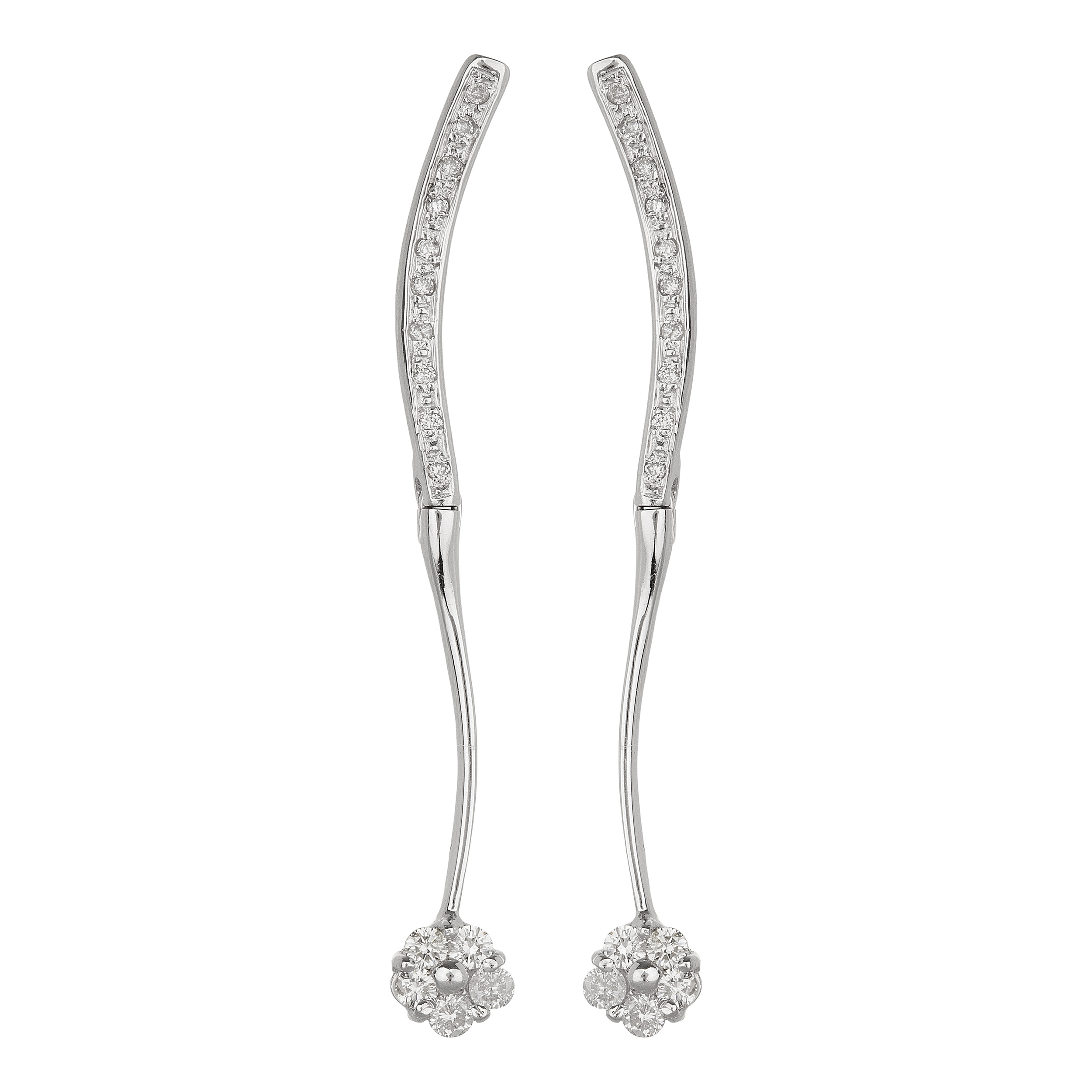 Brinco de ouro branco com 0,70ct de brilhantes. Medida 5,5cm.