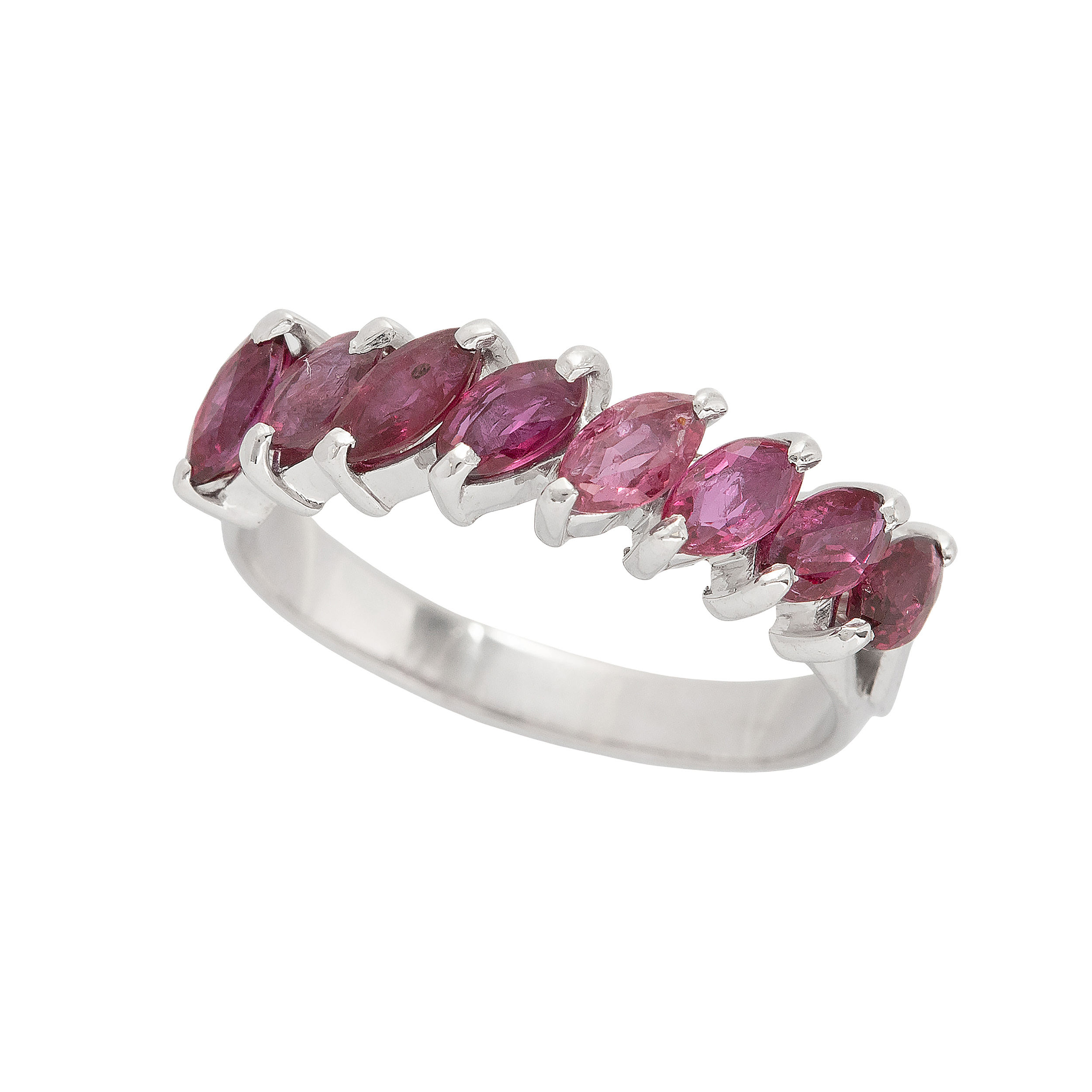 Meia-aliança de ouro branco 14k com rubis. Medida 15.