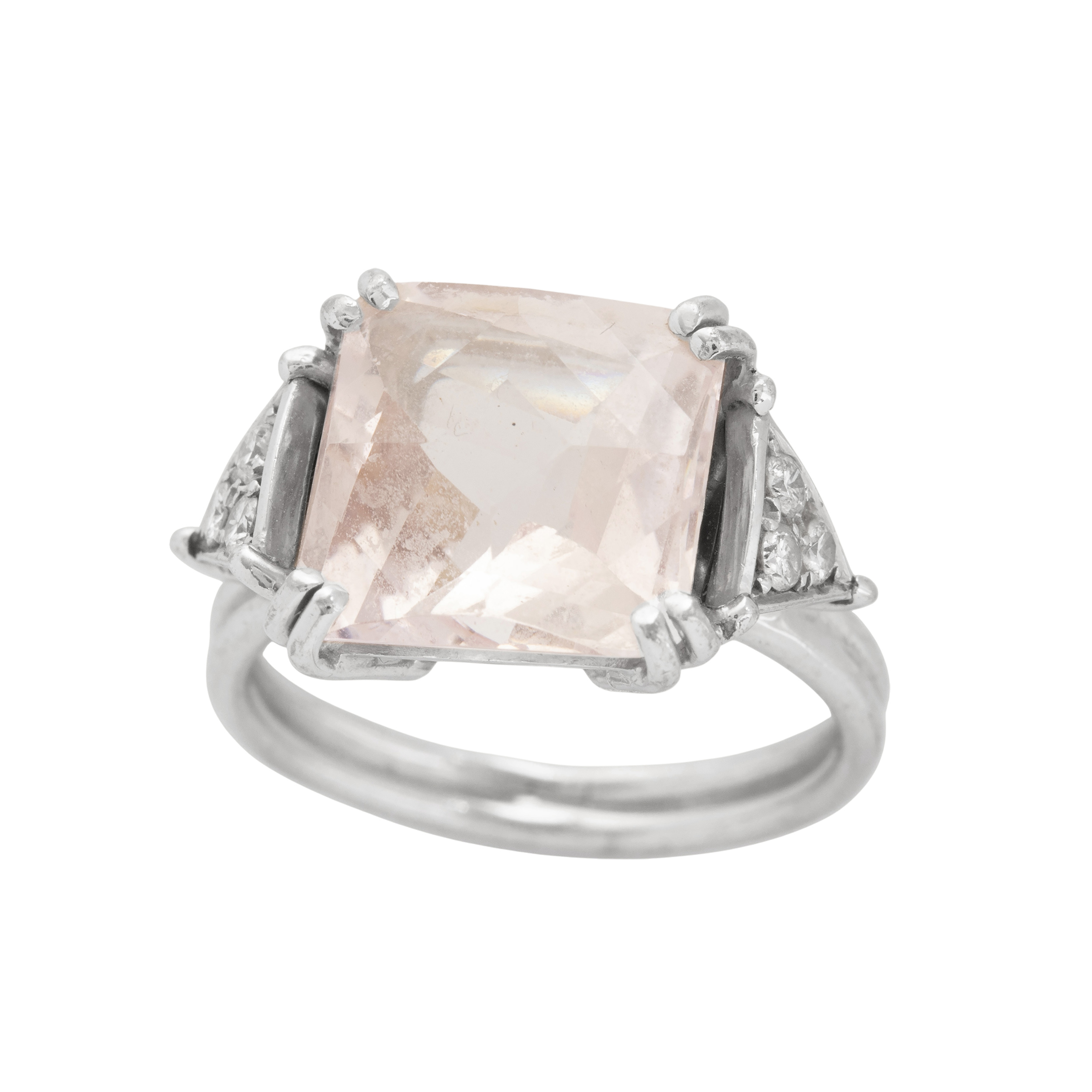 Anel de ouro branco com 8,50ct de kunzita, 0,22ct de brilhantes e 6,8g. Medida 18.