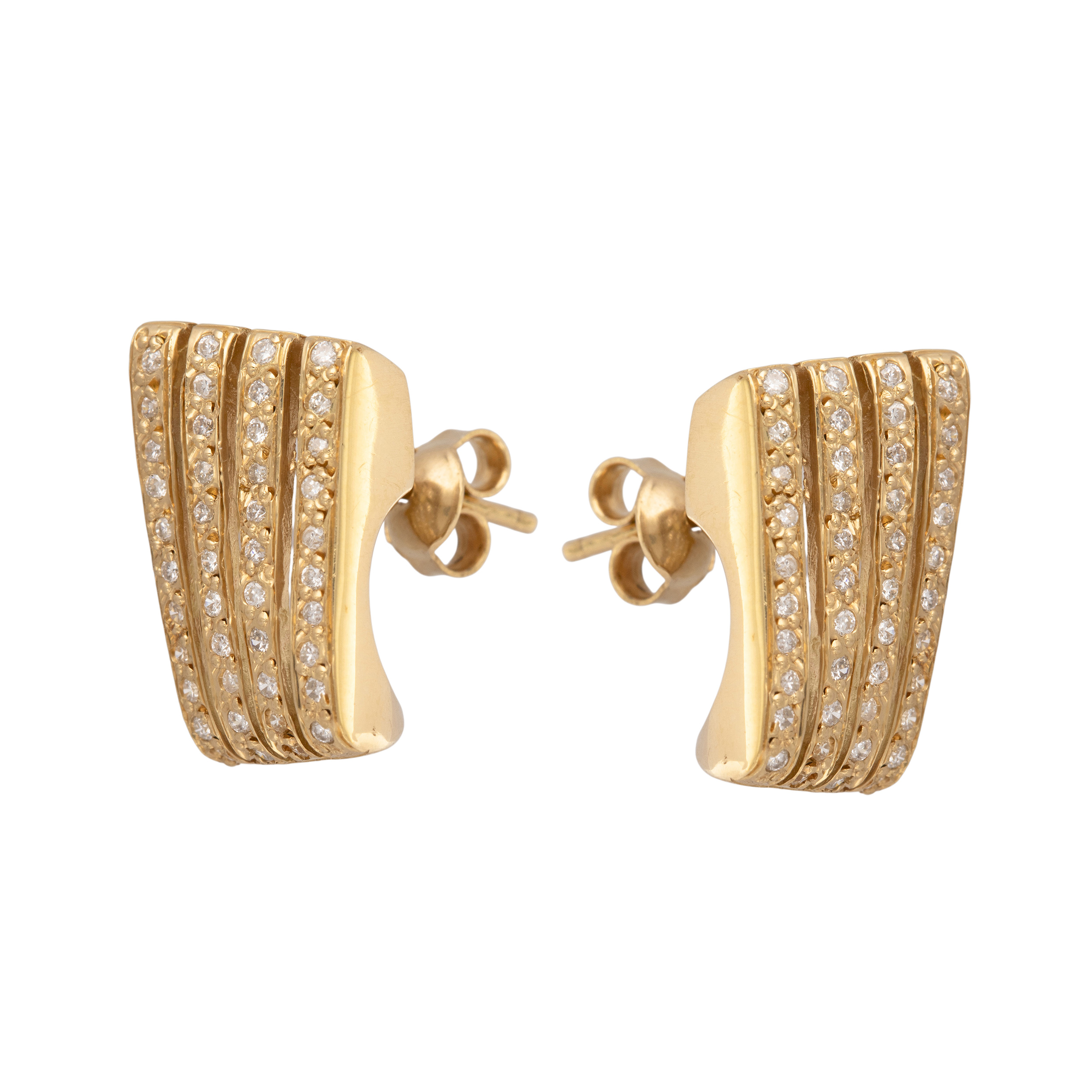 Brinco de ouro amarelo com 0,45ct de brilhantes e 7,0g. Medida 1,5cm.