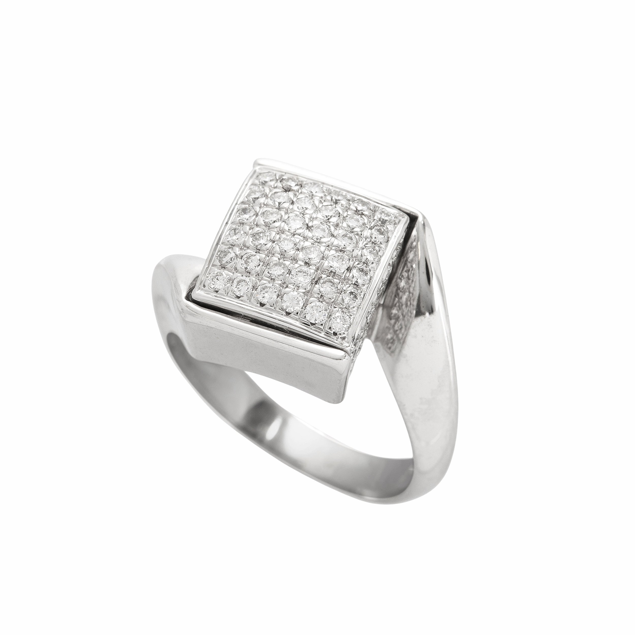 Anel de ouro branco com 0,55ct de brilhantes e 8,7g. Medida 15.