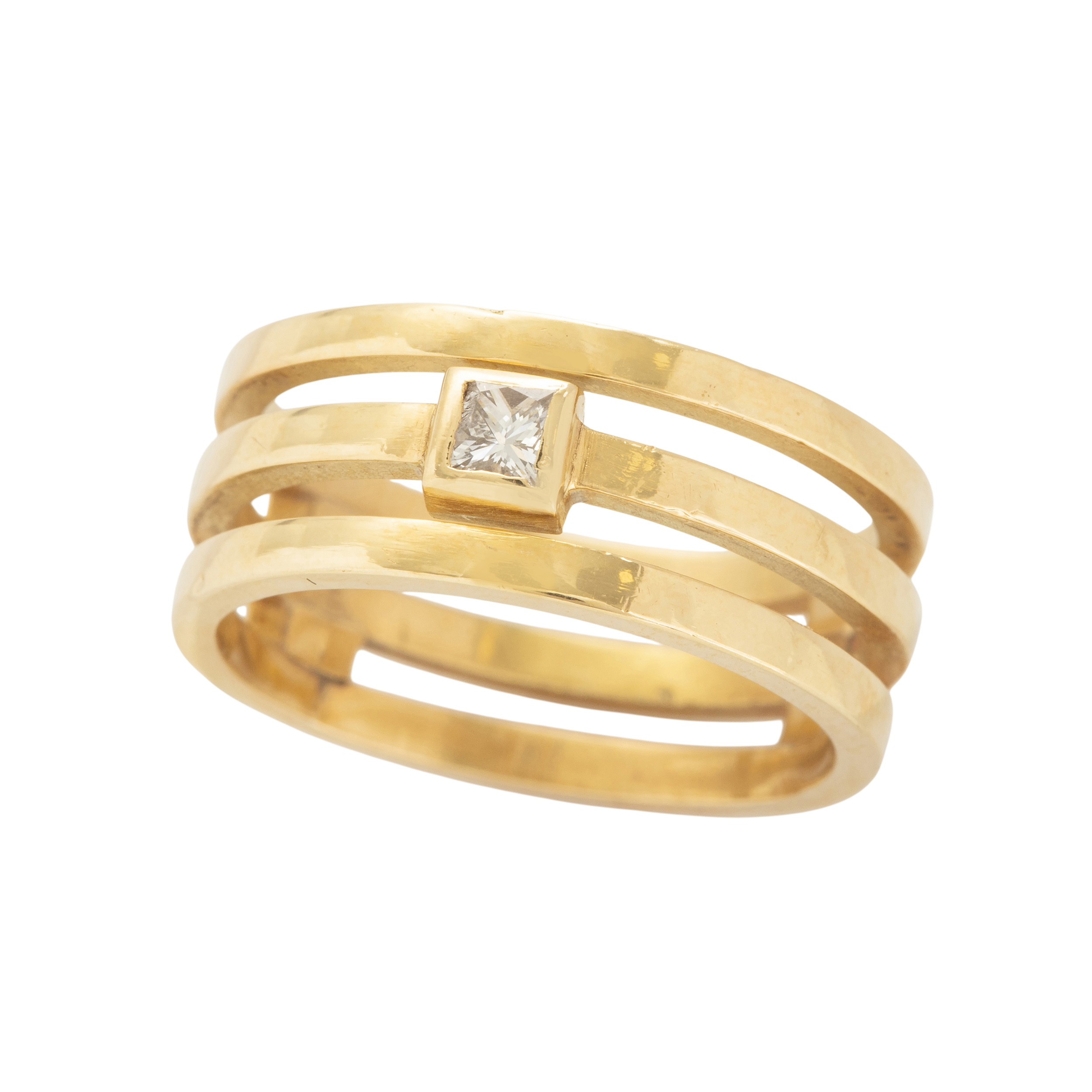 Anel de ouro amarelo com 0,07ct de diamante lapidação princess e 6,5g. Medida 16.