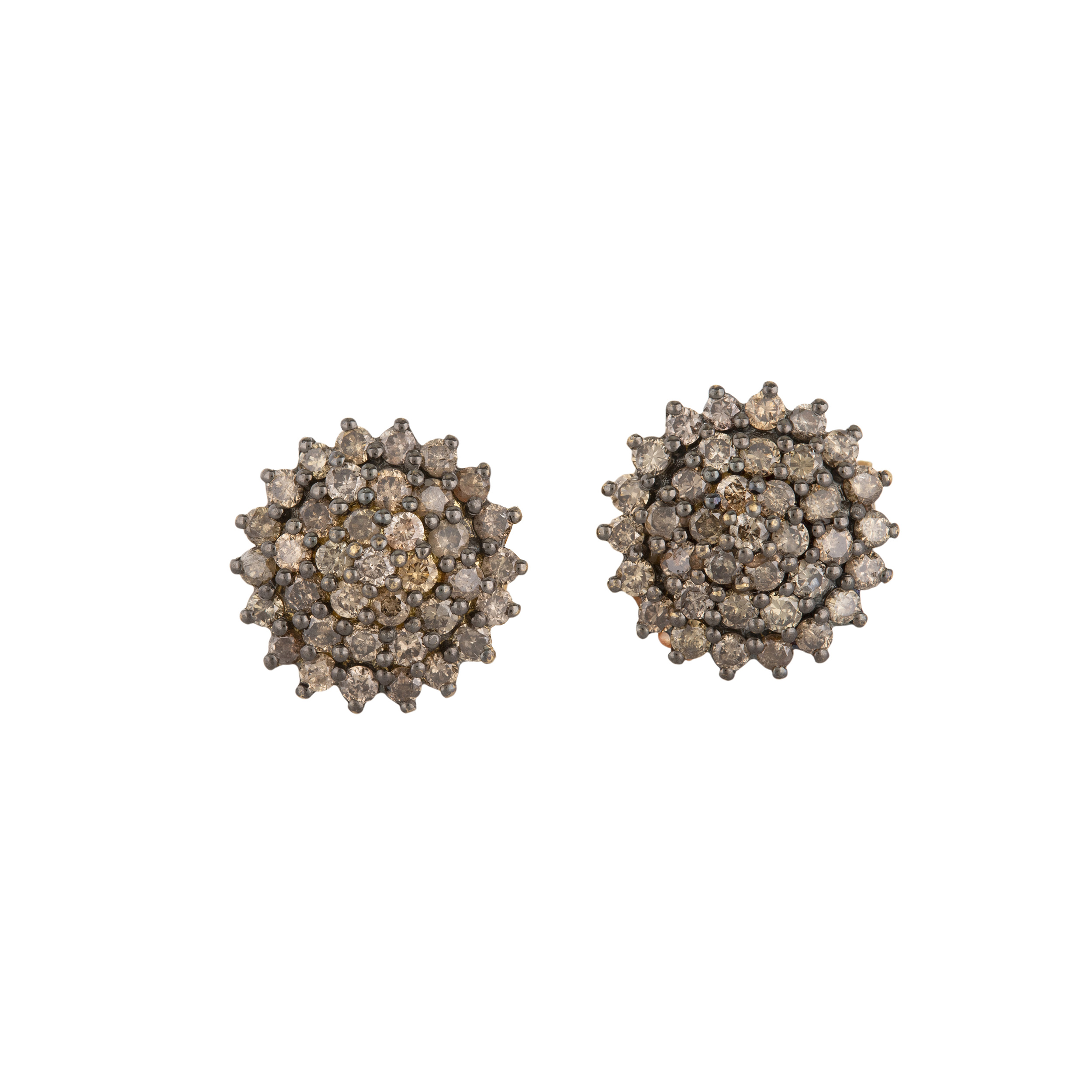 Brinco de ouro amarelo com 2,00ct de brilhantes castanhos. Medida 1,4cm.