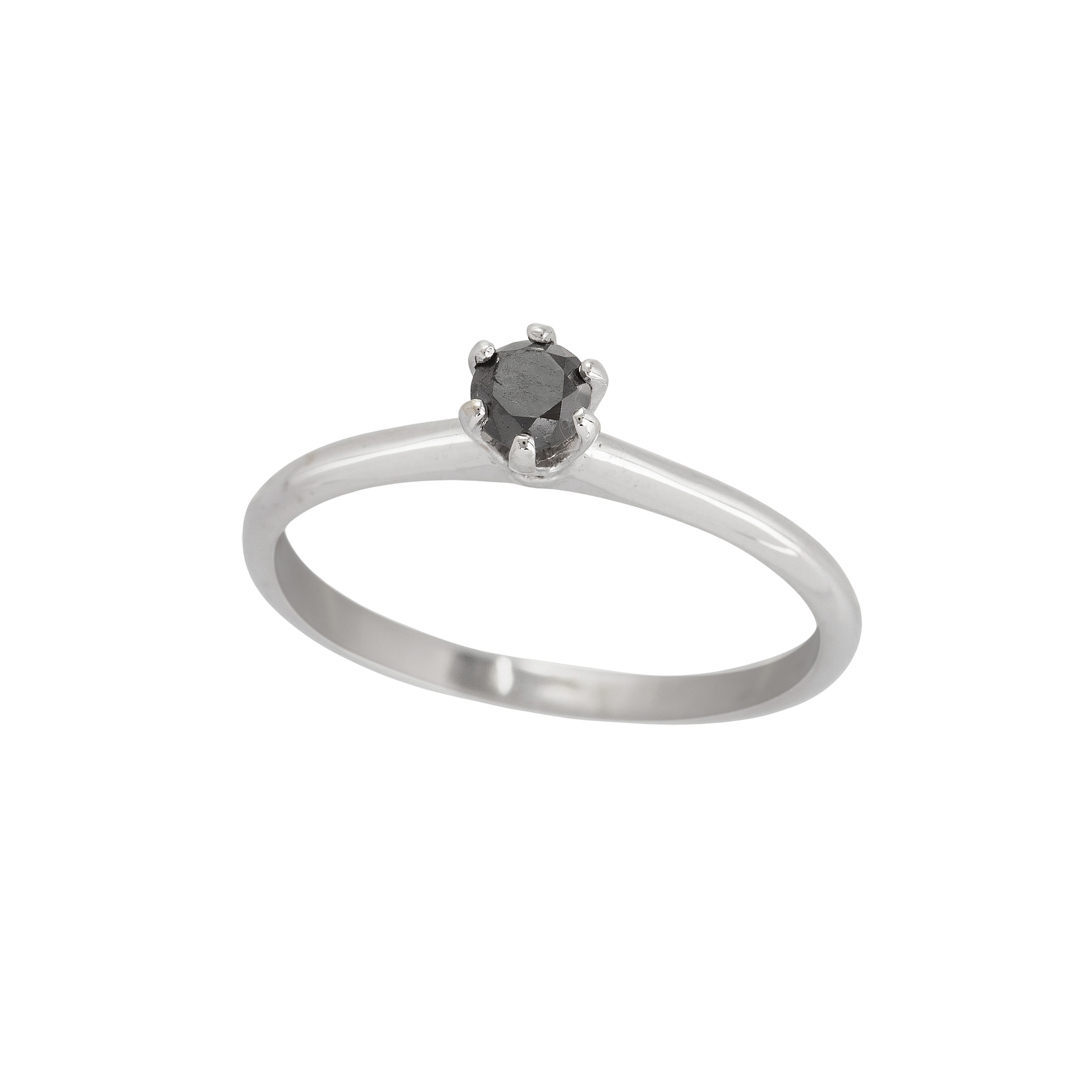Anel solitário de ouro branco com 0,22ct de brilhante negro. Medida 16.