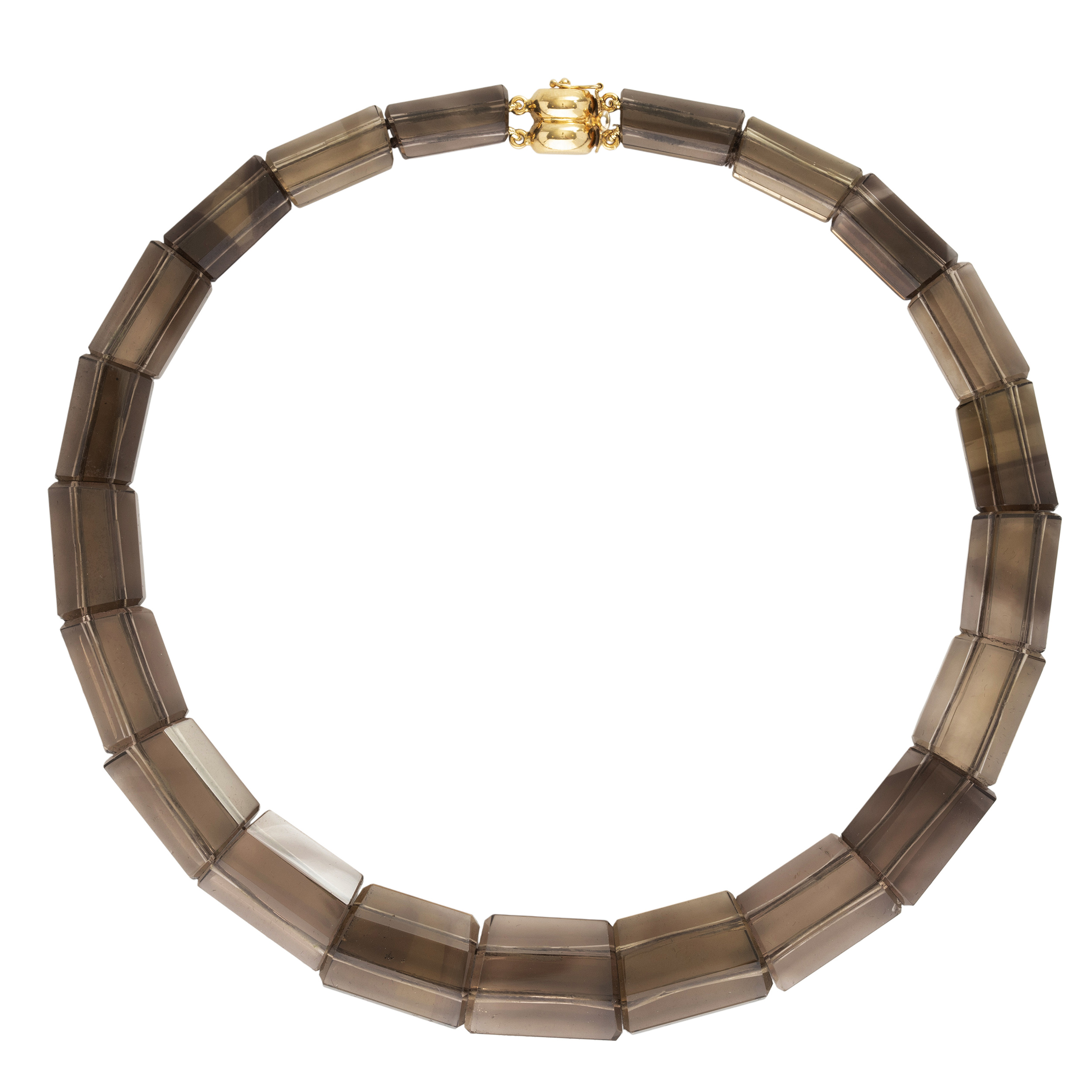 Colar de quartzos fumês com ouro amarelo. Medida 40cm.